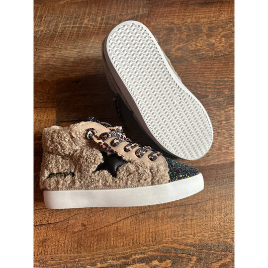 Vendor:Torn and TrendyRegular price $59.00 USDRegular priceUnit price perSale price $59.00 USDTan Sherpa High Top Black Star Sneaker