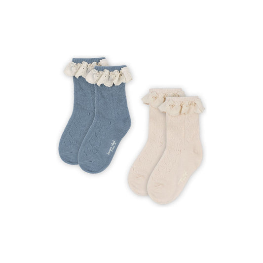 2 PACK LACE LUREX SOCKS SAND/BLUE