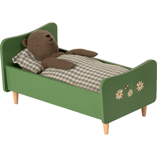 Wooden bed, Teddy dad - Dusty green