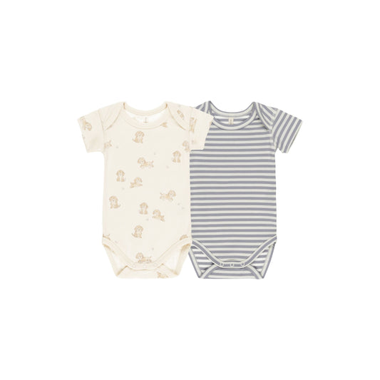 Regular price $58.00 USDRegular priceUnit price perSale price $58.00 USDSS BODYSUIT, 2 PACK and PANT || PUPPIES, SKY MICRO STRIPE