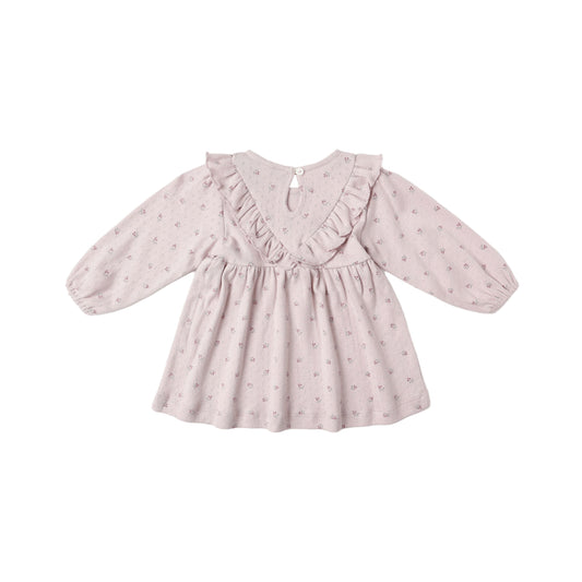 LONG SLEEVE RUFFLE V DRESS || LILAC DITSY