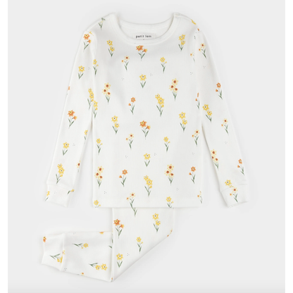 These long-sleeved PJs are the perfect choice for the transitional season where the nights and early mornings can still be a little chilly. Featuring our Daffodils print, they’re the best choice for helping to bring Spring along a little faster. Easy-dressing features like the elasticated waistband and rounded neckline help to encourage the kids to be independent when getting ready for the day. Made from organically grown cotton with a little elastane, the set is super soft and gentle on their skin and has the flexibility they need to play. Matching sleepwear is available for mom and little sisters, so you can feel like a fresh spring day together.