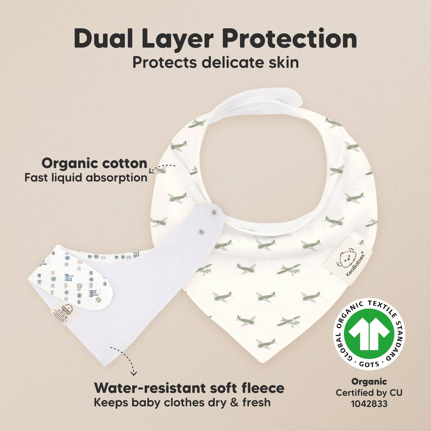 Featuring a dual-layer of GOTS Organic Cotton, our KeaBabies Organic Baby Bandana Drool Bibs are made to be extra absorbent and waterproof with soft polyester fleece backing for baby's comfort. Our baby hanfkerchiefs bibs also come with fine-quality stitching that is gentle on delicate skin and the soft bibs allows babies to keep their cool while they drool.