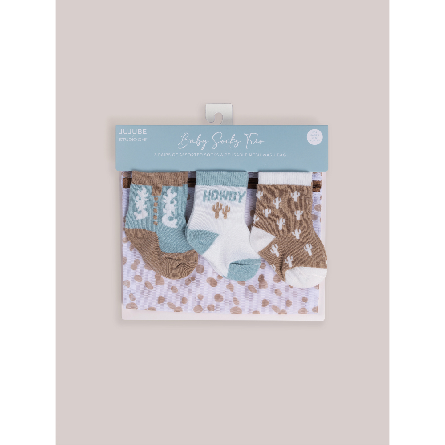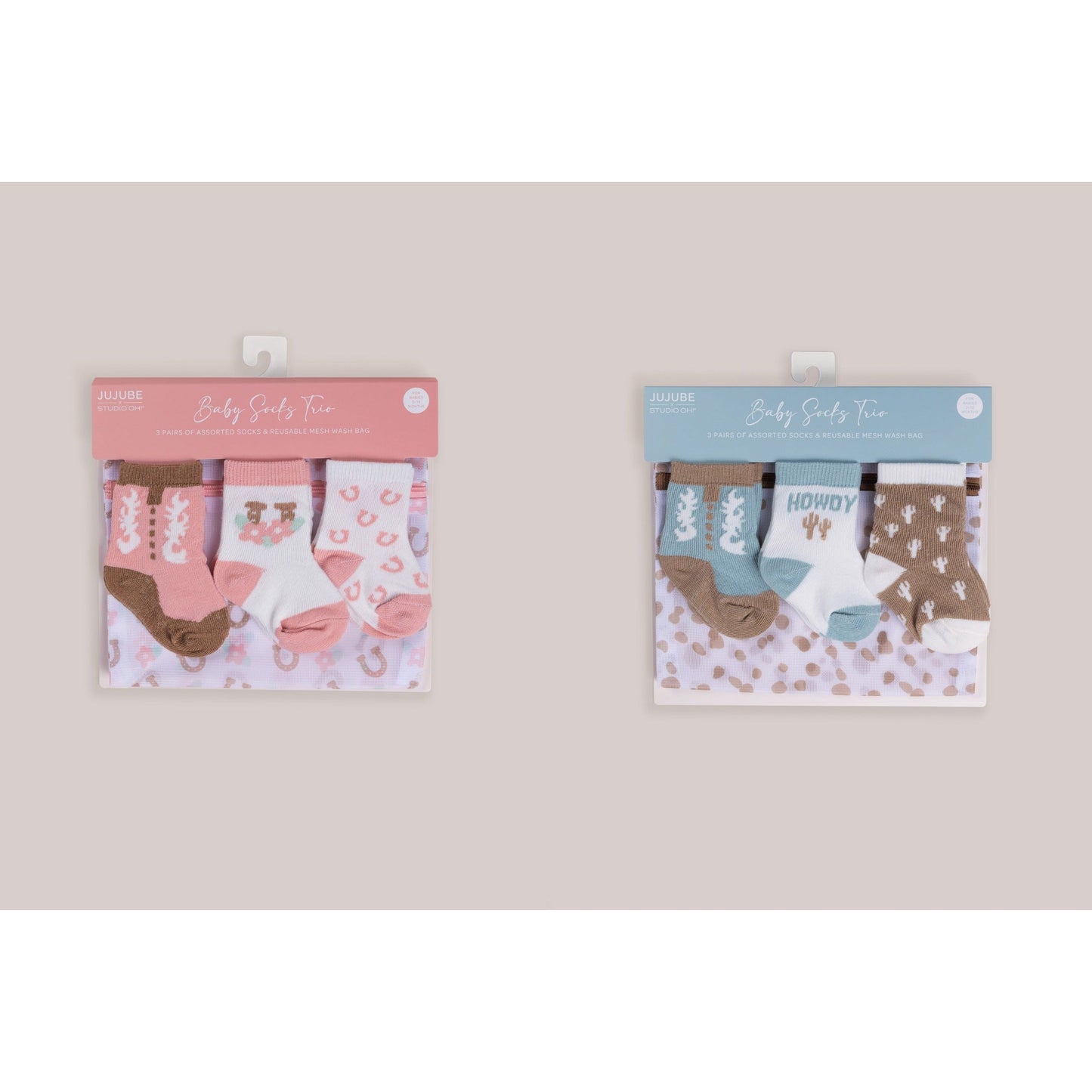 For babies 3 to 12 months old, the Baby Socks Trio sets by JuJuBe × Studio Oh! are designed with adorable artwork in calming color palettes. Each trio features three different designs and comes with a coordinating mesh wash bag so you will never lose a tiny sock in the wash! Soft, durable, and super cute, these socks are delightful and look precious on baby feet! The Baby Socks Trio sets make great gifts for new parents or moms-to-be.