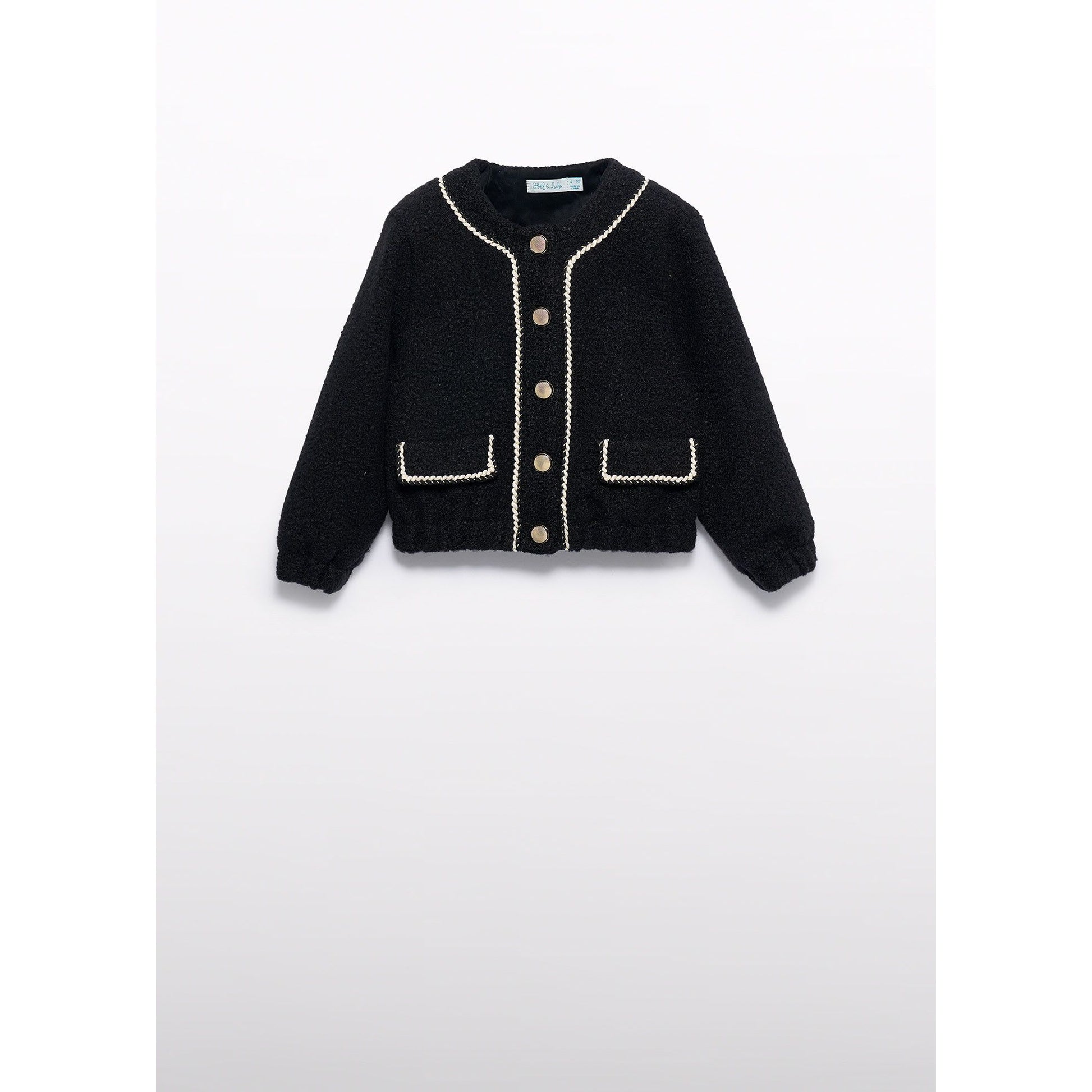 This lightweight black jacket for girls combines style and comfort effortlessly. Made from 100% polyester with a smooth polyester lining, it offers a cozy fit without weighing her down. Perfect for layering on cooler days or breezy evenings, this jacket adds a playful yet practical touch to any outfit.