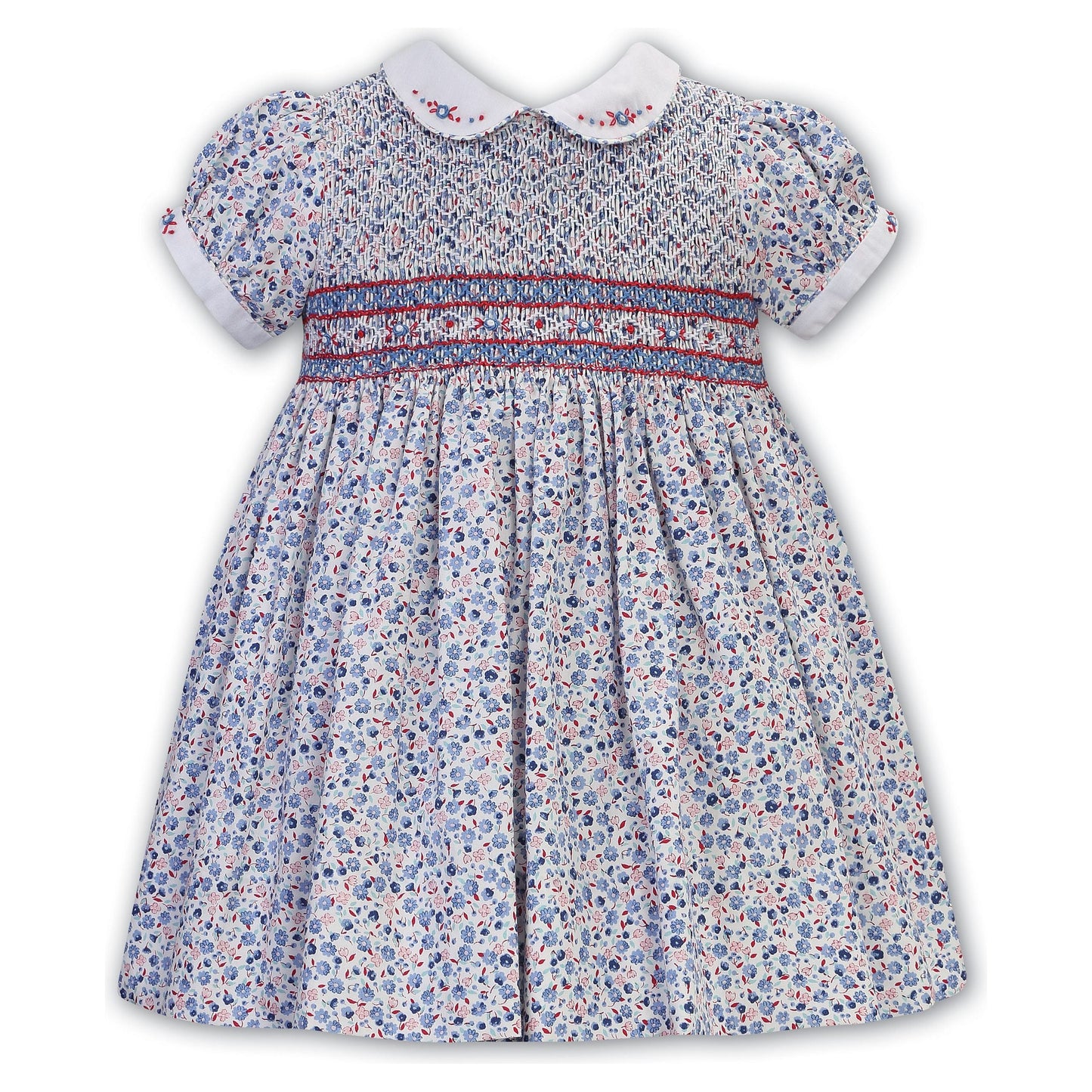 Just like a princess, our summer dress is the perfect addition to your girl’s wardrobe. The dress is delicately smocked by hand and adorned with beautiful pastel blue flowers. A pretty cap sleeve and the peter pan collar is hand embroidered with beautiful flowers, the dress is lined and fastens at the back with pearlescent buttons and a bow.