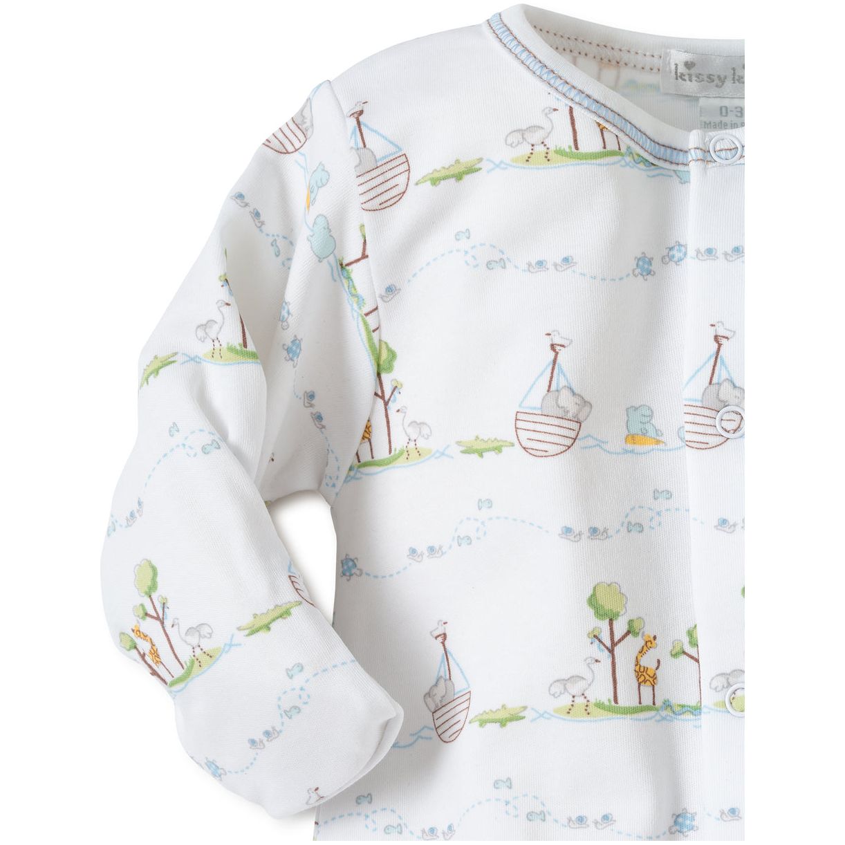 - Noah's adorable animal friends pattern this cozy footie for your baby girl. Made from the softest Pima cotton for ultimate comfort.