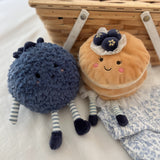 Introducing our Blueberry Plush! This adorable berry is plump and purply, making it the ultimate scrumptious companion for your little one. With a delightful topknot and a sunny smile, it's sure to brighten any day. Your baby will be berry happy cuddling with our precious Blueberry, designed for squeezing with its round, plush body. Embroidered facial features and rosy cheeks enhance its irresistible charm, while the fun striped arms and legs add an extra burst of creativity to playtime. Perfect as a gift for any occasion, this sweet plush blueberry transforms ordinary moments into extraordinary adventures!