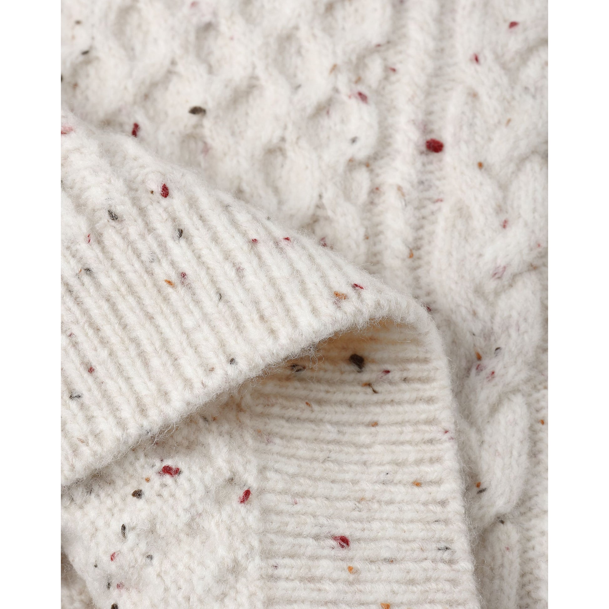 Cozy up in style with this Natural Speckled Cable Knit Sweater! Crafted from a soft blend of nylon, acrylic, wool, and polyester, it offers warmth and comfort with a playful twist. The charming speckled design and textured cable knit make it perfect for layering on crisp days or adding a touch of fun to your casual wardrobe.