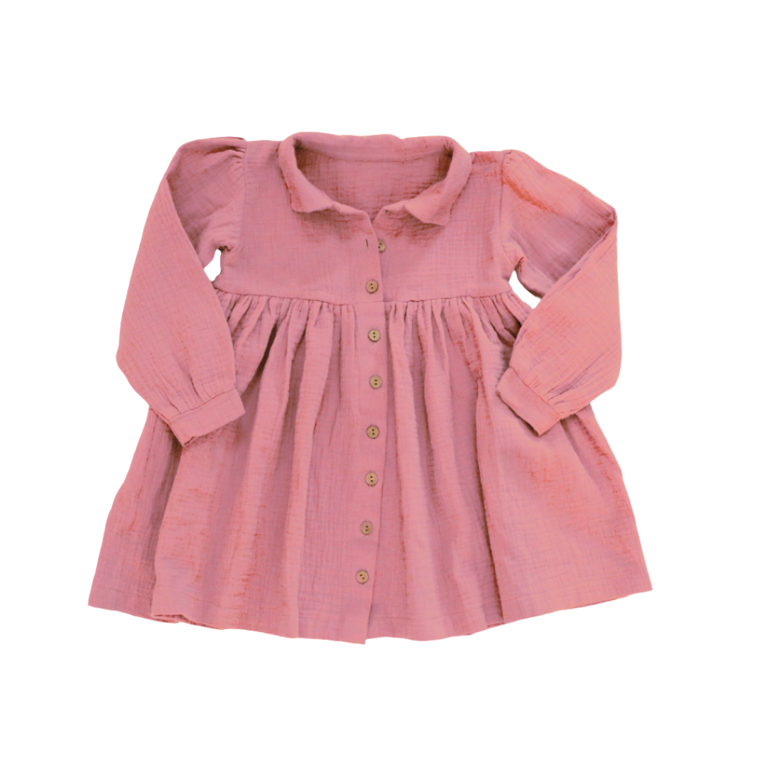 This girls' soft, rose-colored button down dress is both comfortable and stylish. The collared design adds a touch of sophistication, while the soft material ensures all-day comfort for your little one. Perfect for any occasion, this dress is a must-have for your child's wardrobe.