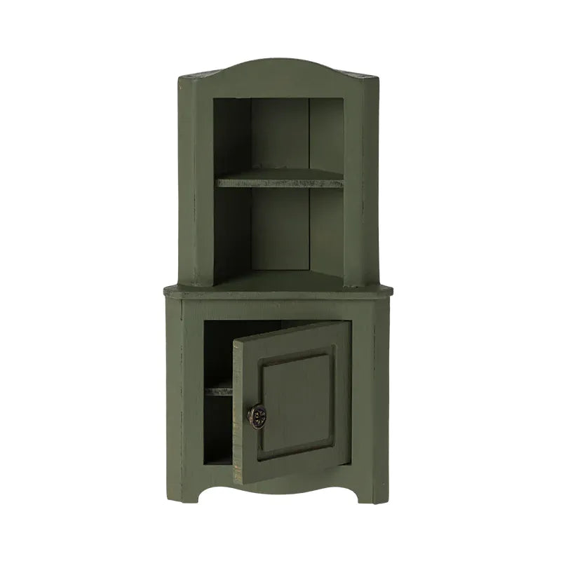 The perfect closet to store a lot of stuff. It fits perfectly into a corner so it will look stylish in the home decoration. It has a vintage finish - variation in the paint may occur. This closet fits perfectly into the mouse hole farm house.