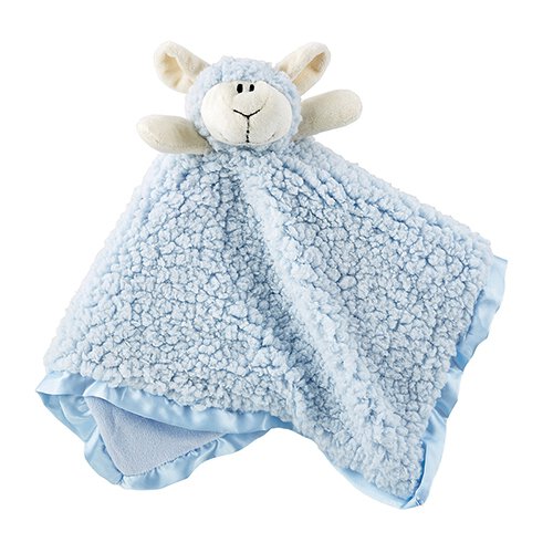 An extension to our Best-Selling Cuddle Bud. This blue lamb blankie with snuggle soft textured poly fleece, lined with velour and trimmed with satin. Makes for baby's best friend!