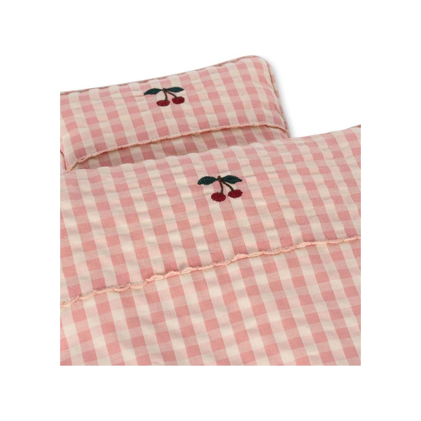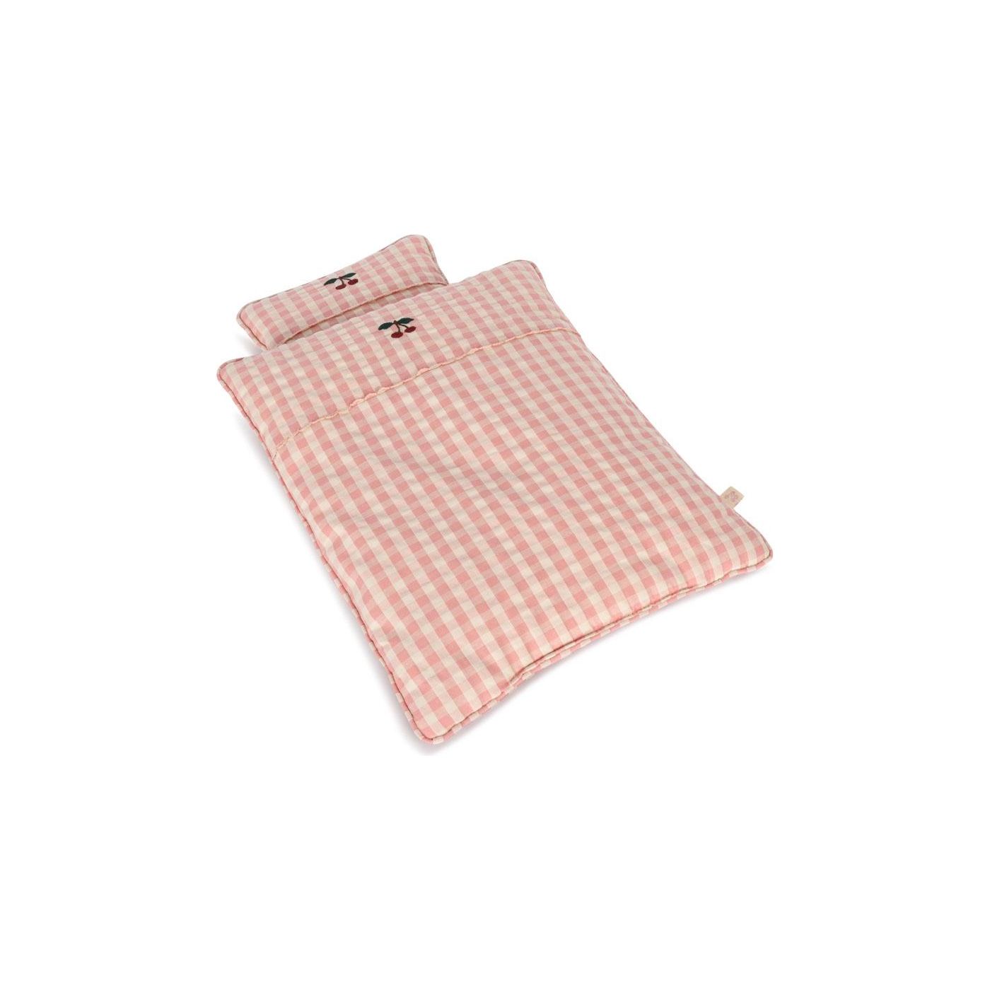 Padded doll bedding made in 100% cotton. Designed with soft piping. The bedding comes in a matching fabric carry bag with a tie-string closure. Made from 100% cotton with 100% polyester filling. 3y+. WARNING!. CHOKING AND STRANGULATION HAZARD. Small parts. Long cord. Not suitable for children under 36 months.