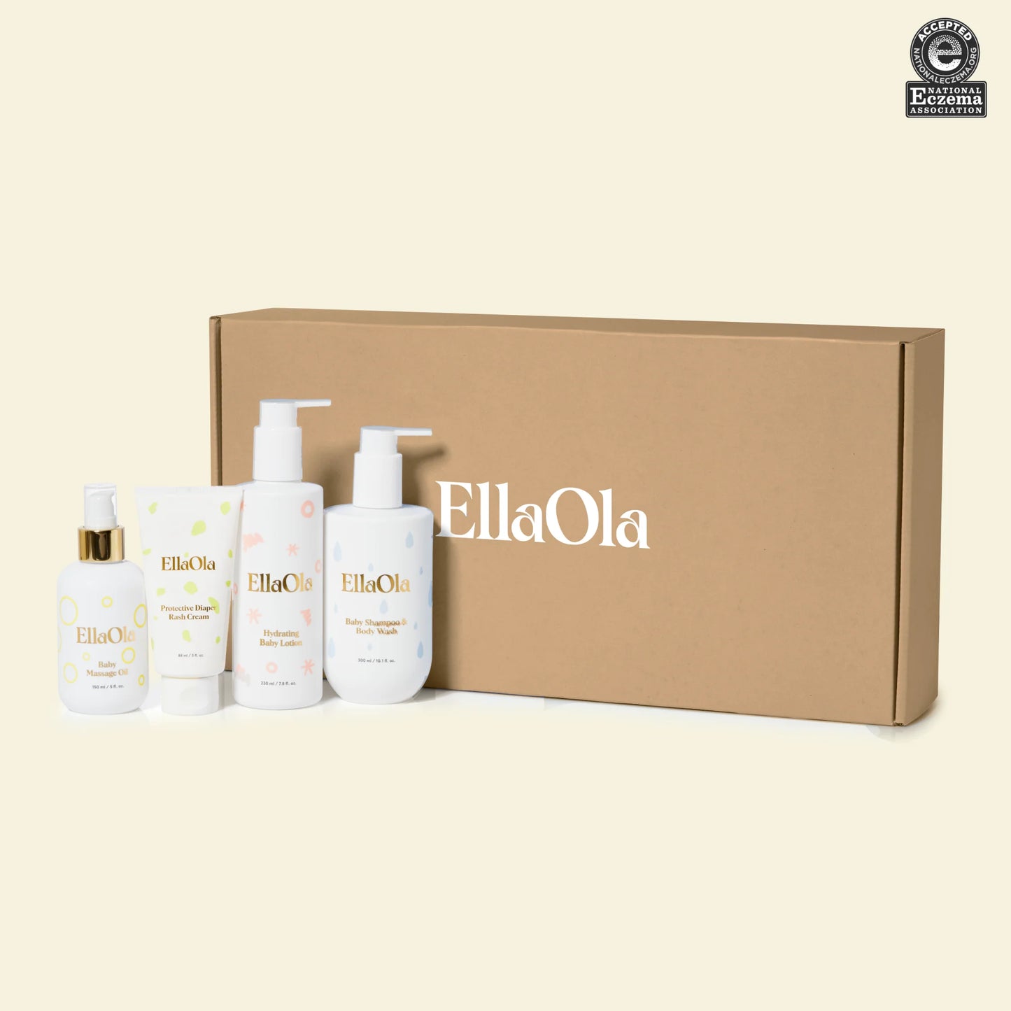 The Baby's Essential Gift Set is a 4-product giftable set perfect for baby showers that covers all your baby care needs, from bathtime, diaper changes to baby massages and bedtime.