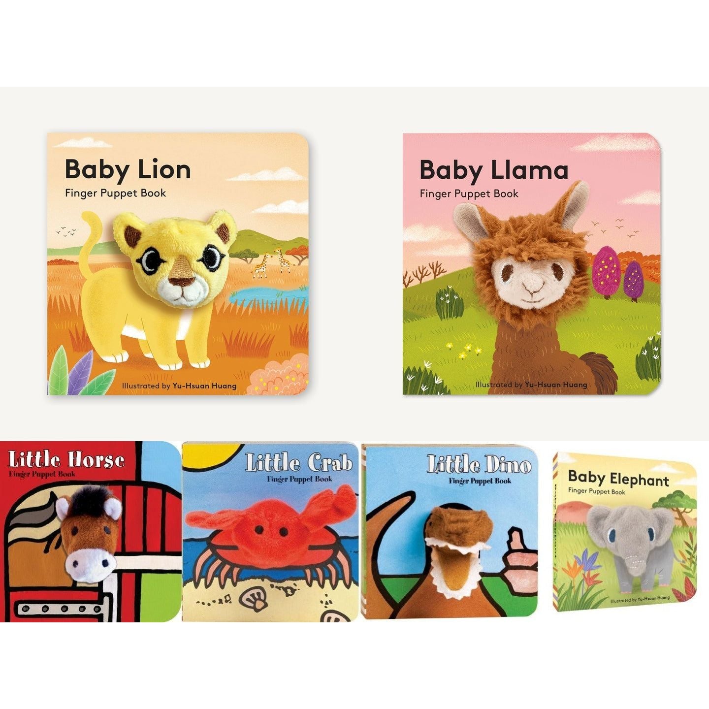 Each book features a permanently attached plush finger puppet and peek-a-boo holes in every page, giving parents and children a fun, interactive way to play and read together.