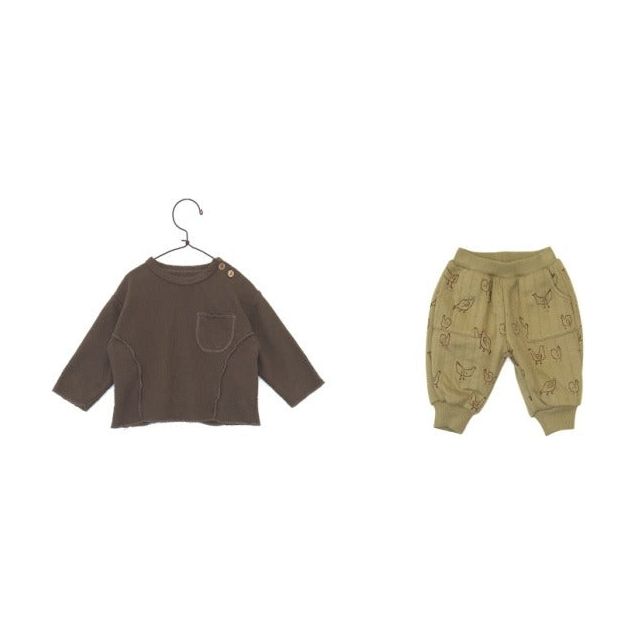 This modern two-piece ensemble is designed with sustainability in mind. Made in Portugal from 70% organic cotton and 30% cotton, this breathable jersey long sleeve t-shirt and printed pant combo will keep you comfortable all day.