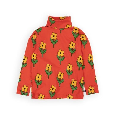 FLOWERS TURTLENECK LONGSLEEVE RUFFLED JERSEY