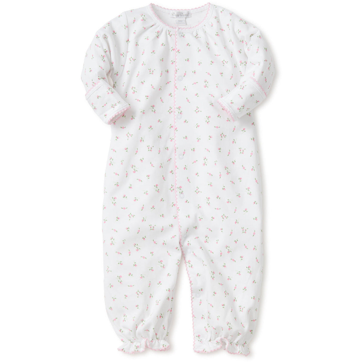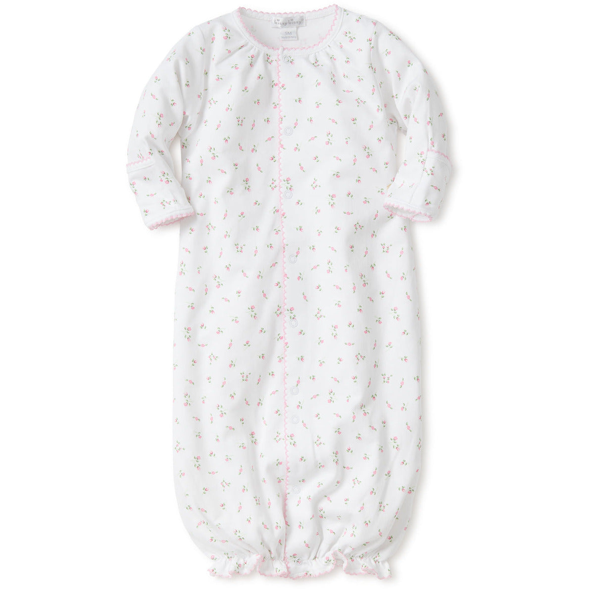 - Tiny rosebuds pattern this cozy convertible gown for your baby girl. Snaps on legs allow for easy conversion to playsuit; made from the softest Pima cotton for ultimate comfort.