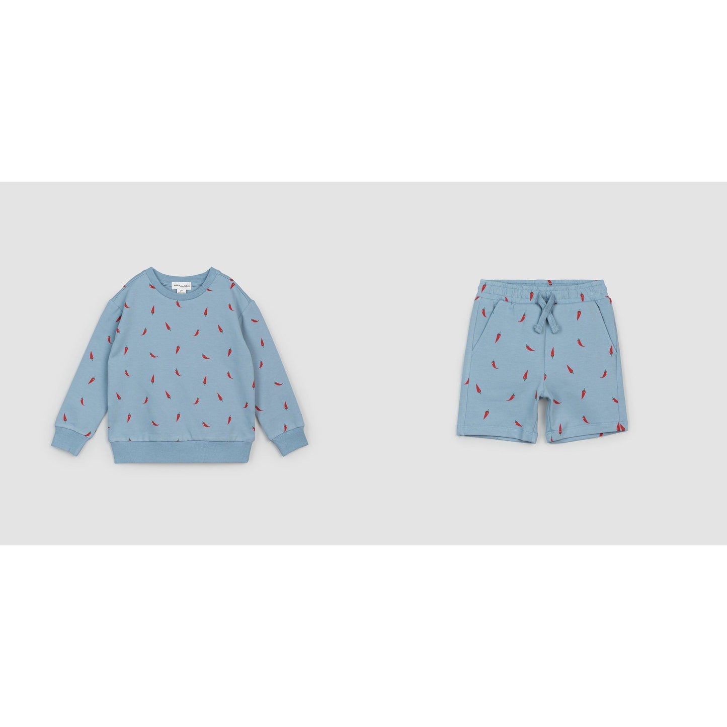 Combining a cool blue with our hot chilli print, this French Terry sweatshirt and short set is a great way to keep them at just the right temperature in the Spring. With a rounded neckline and elasticated cuffs, the sweatshirt has a snug fit that’s easy to wear and layer over tops from the same range.