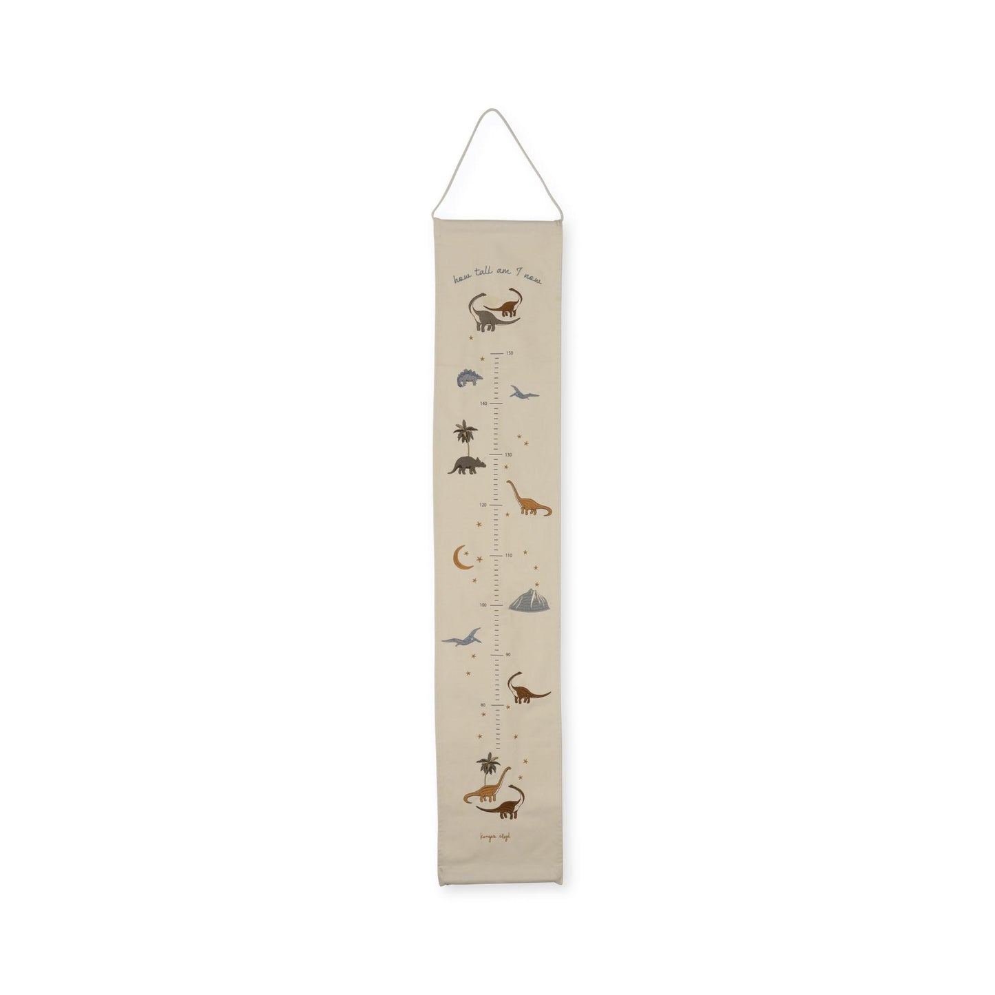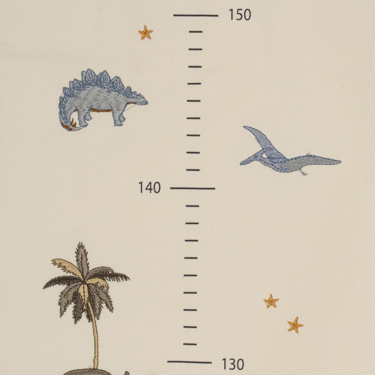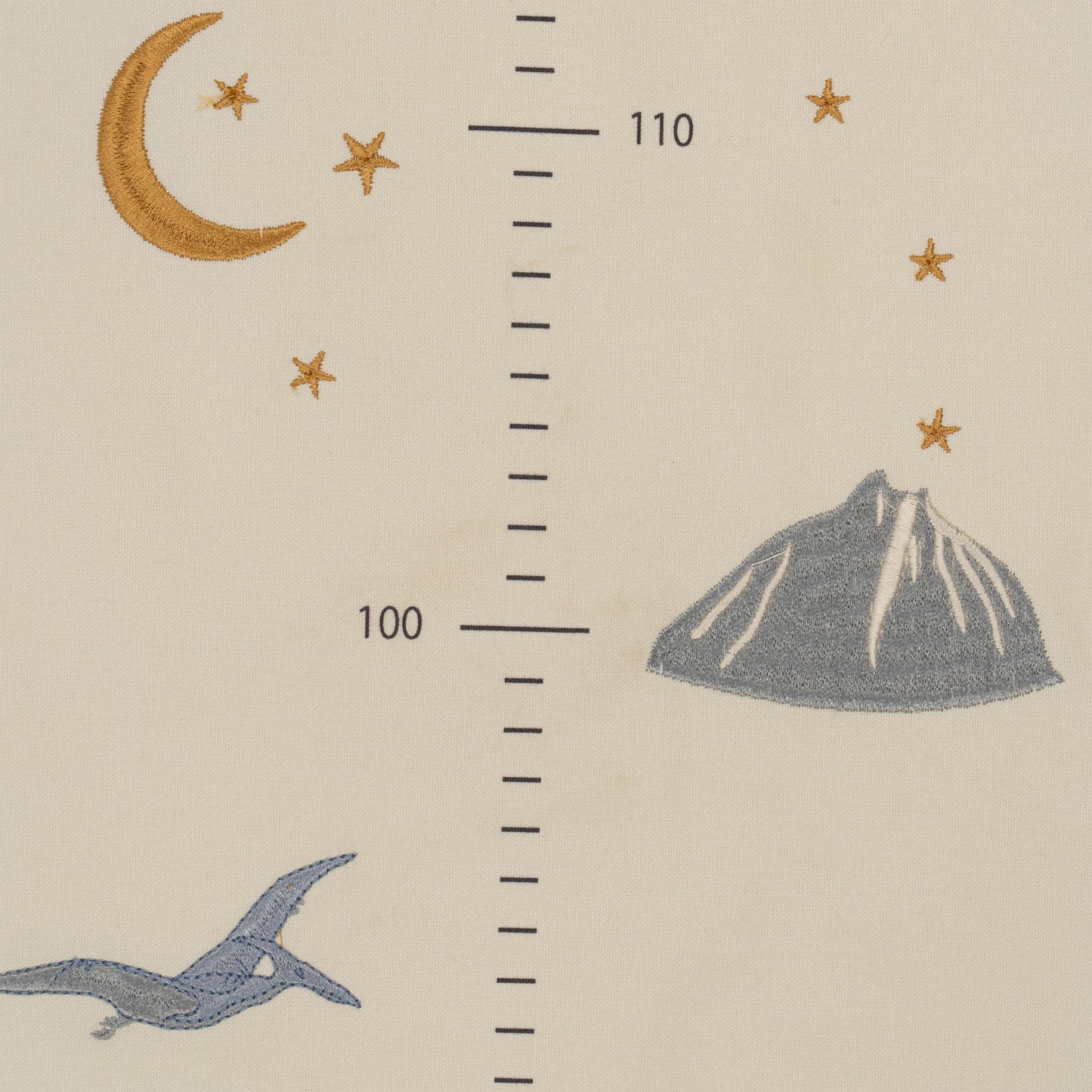 Height chart made in 100% cotton with a beechwood stick. Designed with embroidery and a practical rope at the top of the chart. Each chart comes with a set of labels to iron on to the chart showing your child's height at different ages (1 - 10 years). H: 160 cm. Chart is in cm