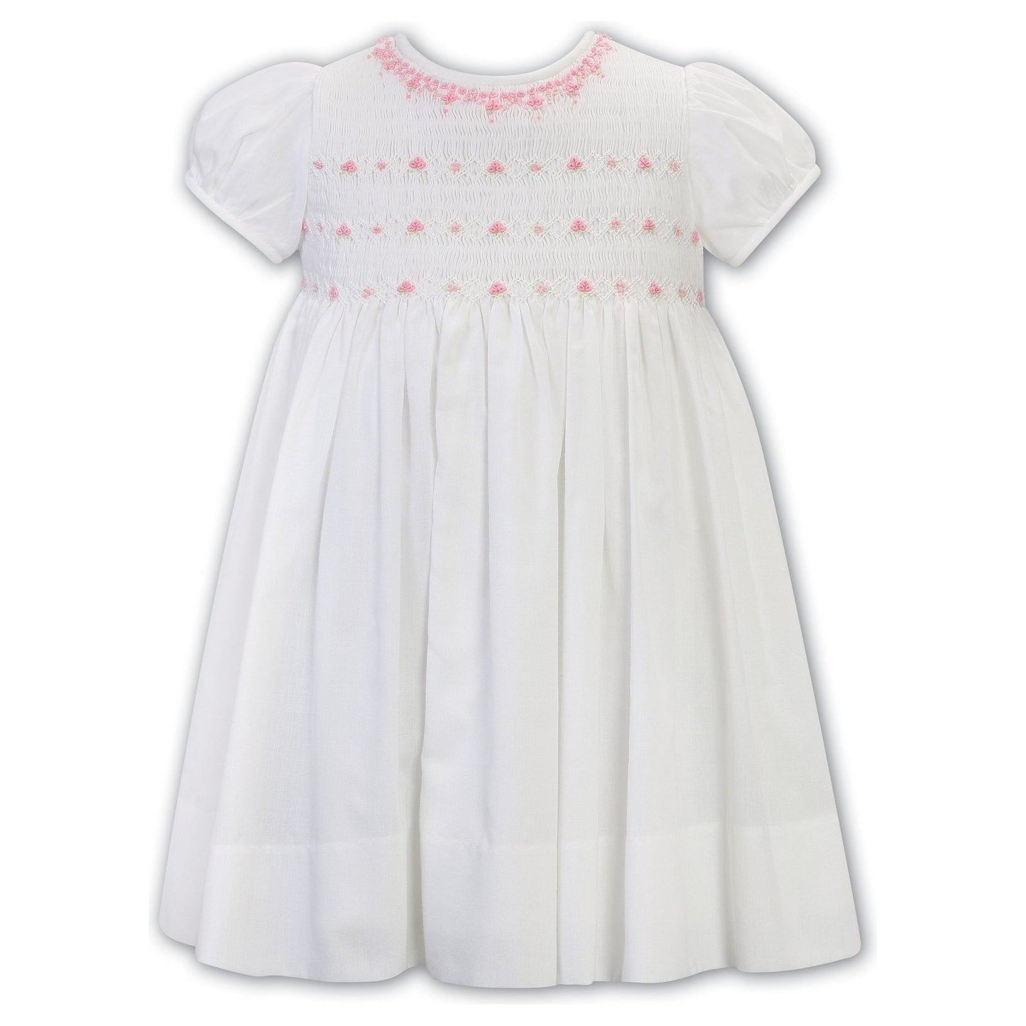Ivory with Pink Hand Emb and Hand Smocked Dress