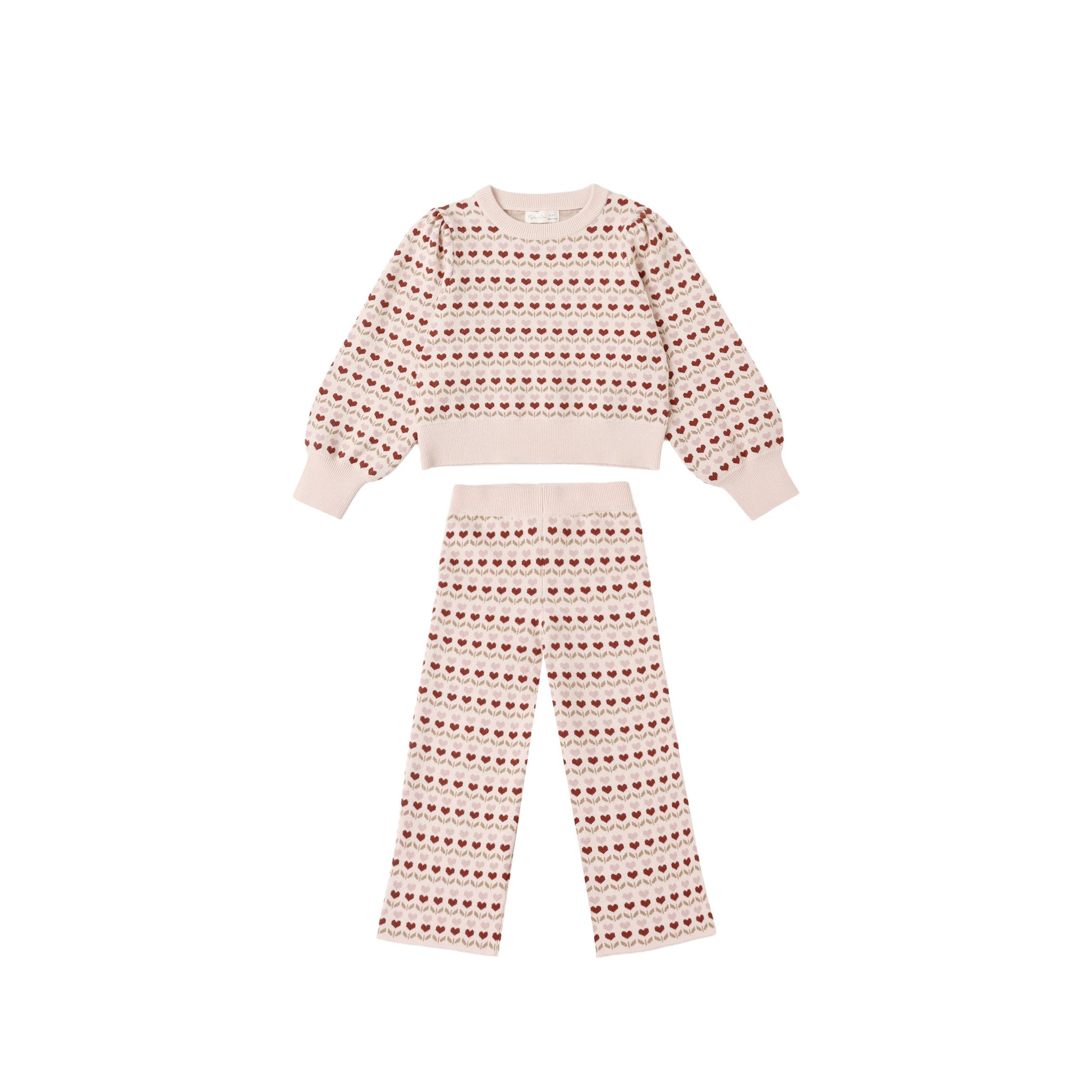 Wrap your little one in cozy charm with the Jacquard Knit Set in Ruby Hearts. Crafted from a soft blend of polyester, acrylic, modal, and polyamide, this playful design offers warmth and gentle stretch for all-day comfort. Perfect for adding a fun pop of love to any outfit!