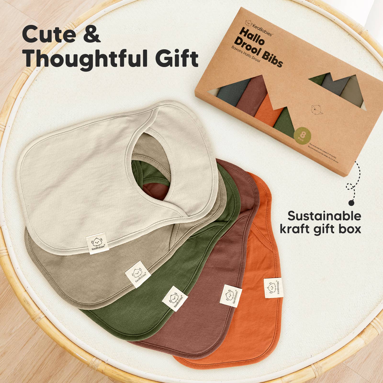 - 8-pack contemporarily stylish baby bibs that pair well with any outfit.