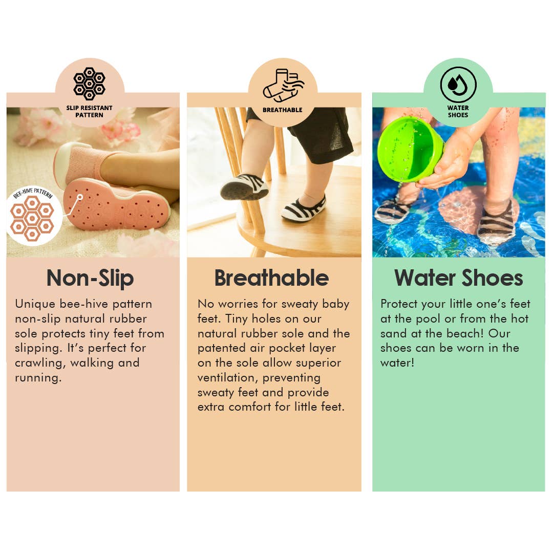 STAY ON: The cotton top wraps the little feet just like comfy socks - easy to put on and take off. Superior elasticity helps keep them on.