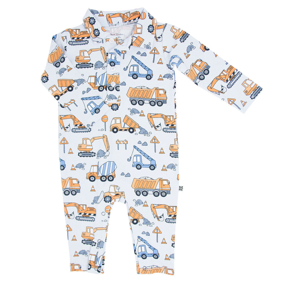 The Sweetest Polo Romper Let him look smart and feel great in this NEW! Long Sleeve Polo Romper. Long sleeves and pants Front button closure at neck and snap at inseam Tagless size label for total comfort Flexible for active lifestyles Safe for sensitive skin
