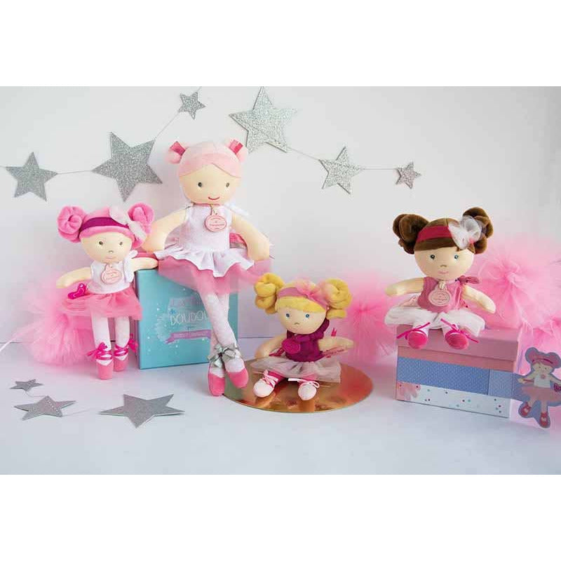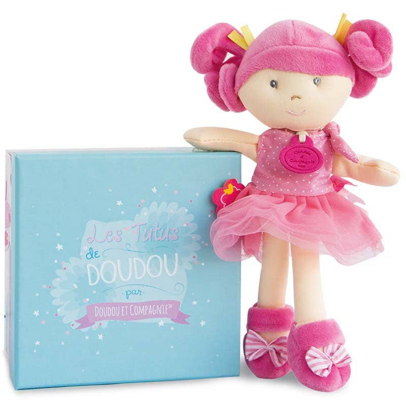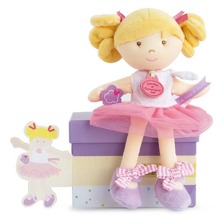 These French-designed soft Ballerina dolls come in an assortment of 6 different dolls: two have pink hair, two have blonde hair and two are brunettes, with fun pigtails with crinkly 'curled' hair. Each set has a school-day outfit with Mary Jane shoes and adorable tutu dress, and a Ballerina outfit for when it's time to dance! Adorable and soft, these ballerinas will be every child's first best friend. Collect your favorites!