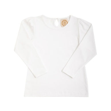 Introducing the Long Sleeve Penny's Play Shirt, perfect for any active girl. This shirt features long sleeves and a crisp white color, ensuring both comfort and style during any playtime activity. Made with high-quality fabric, this shirt is durable and easy to clean.