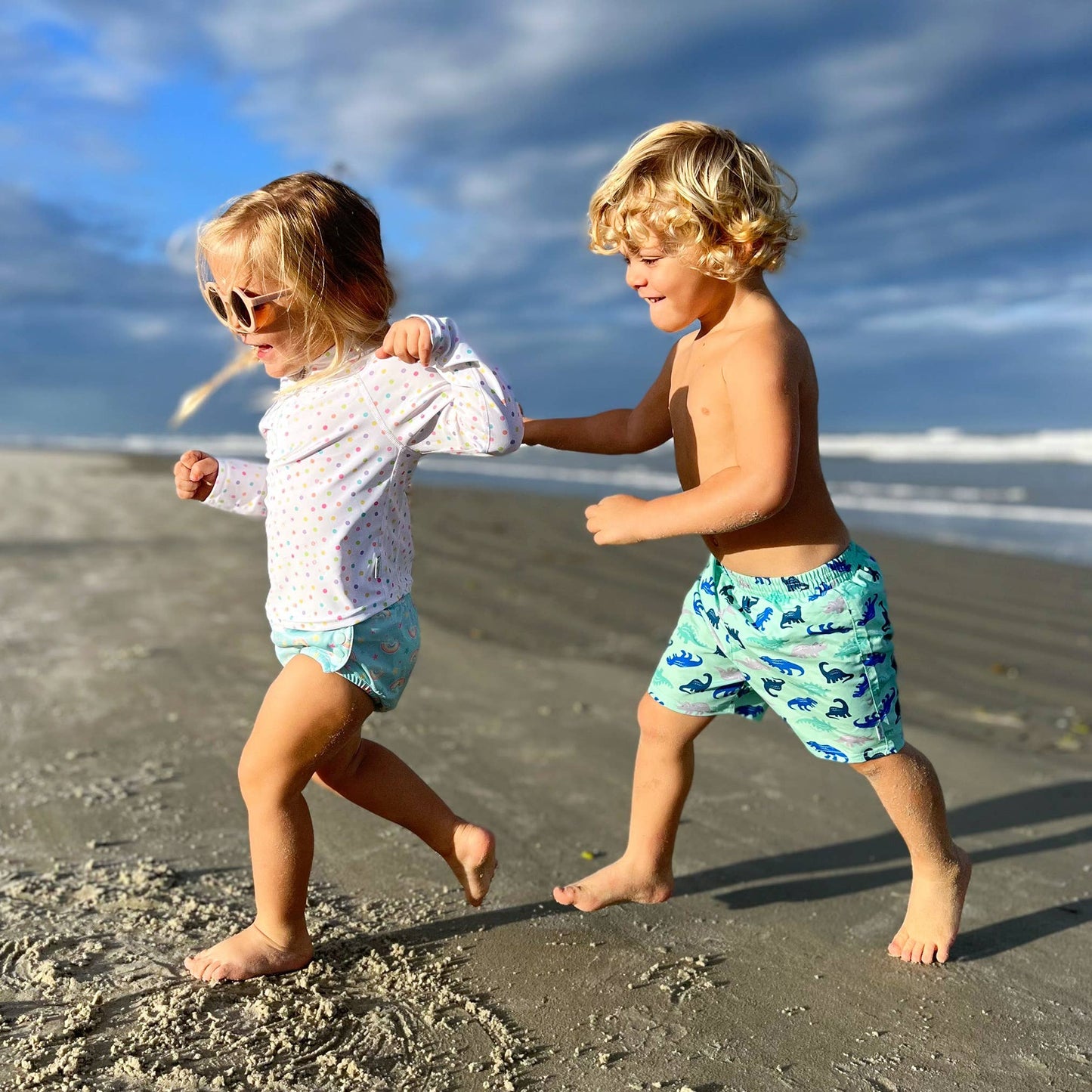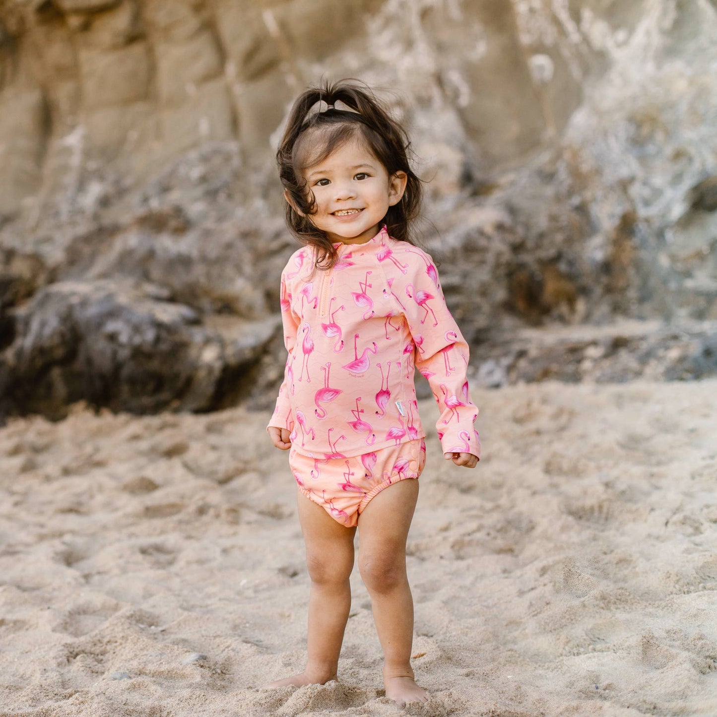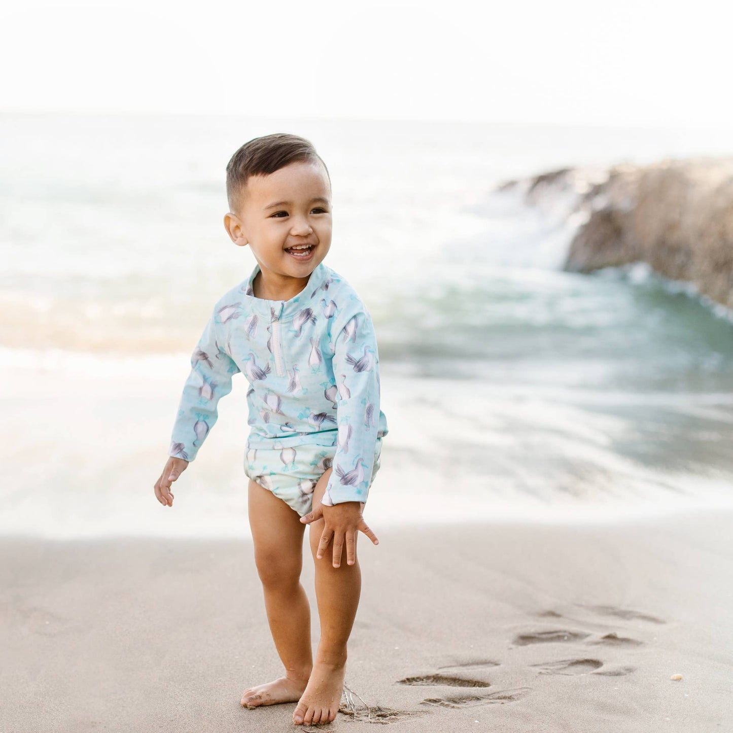 All-day sun protection, wet or dry—Our infant and toddler rash guards keep baby covered all day, in and out of the water, reducing sunscreen needs in those areas.