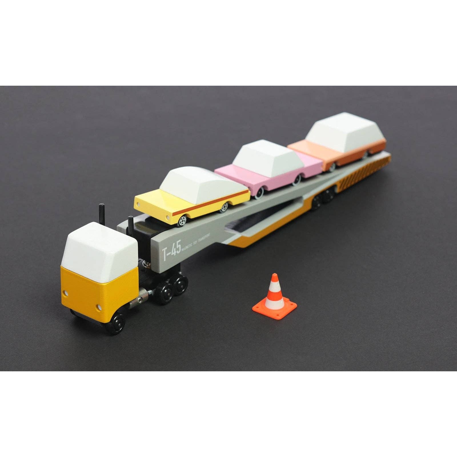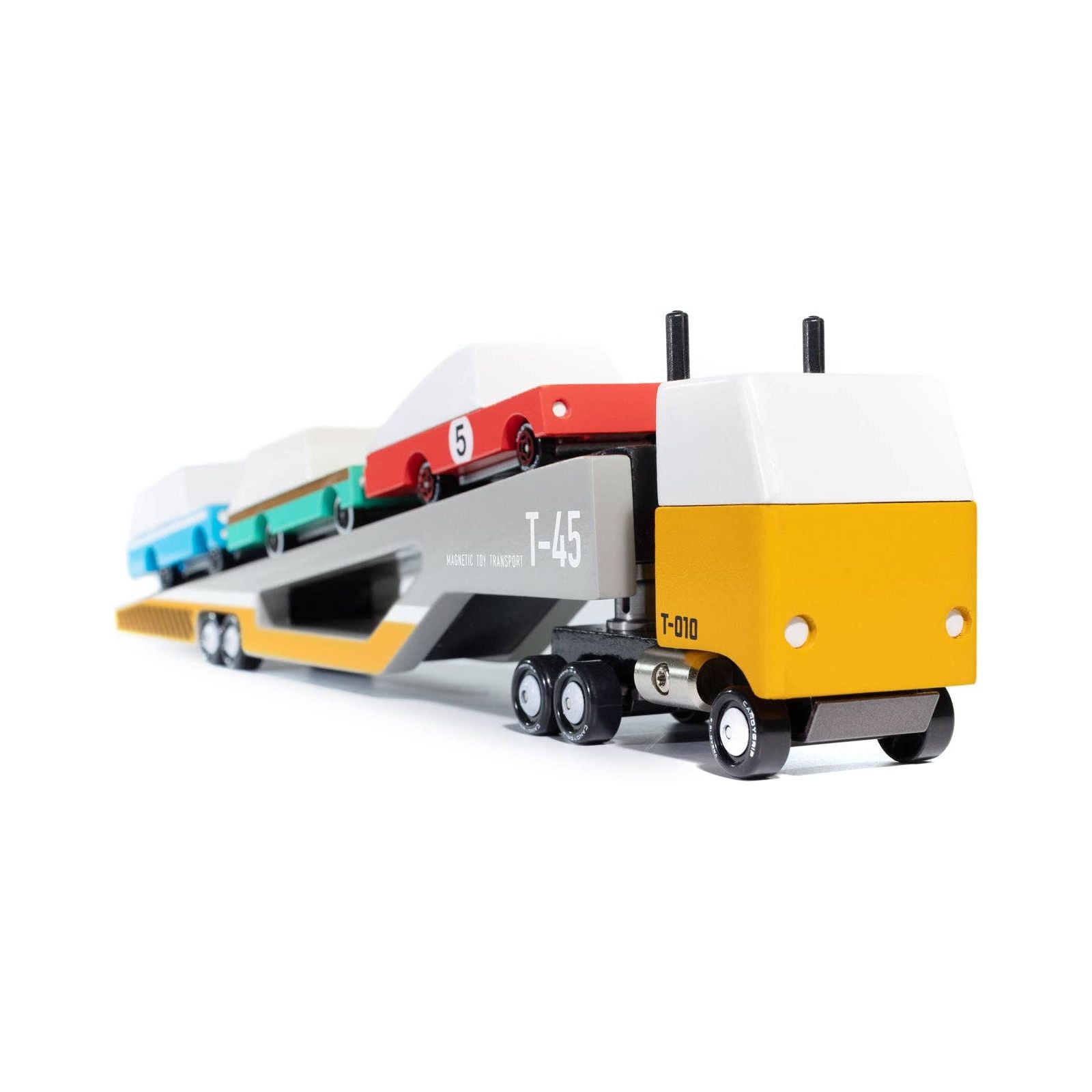 Load up and roll out! The Magnetic Car Transporter is ready to haul up to three CANDYCAR® vehicles eastbound, westbound, or toy chest-bound!