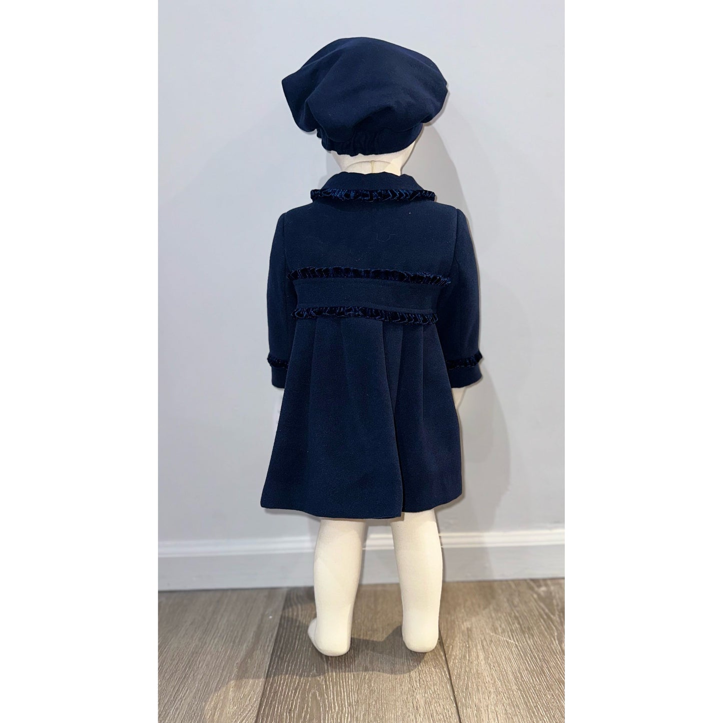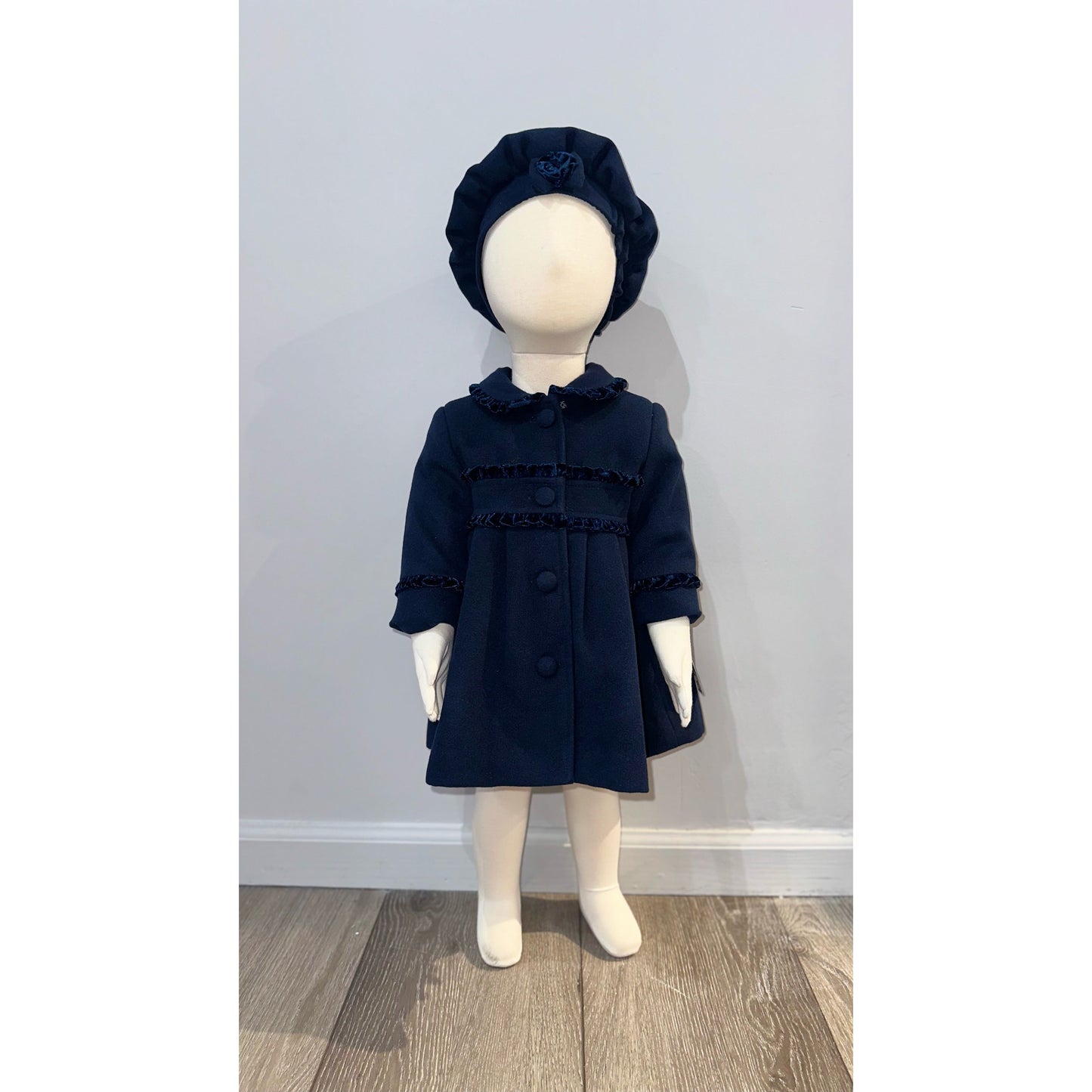 Complete your little girl's winter wardrobe with our adorable Navy Ruffle Coat and Matching Beret Hat set! Made with soft and warm material, this coat and hat are perfect for keeping your infant girl cozy and stylish. The ruffle detailing adds a touch of sweetness, making her the cutest fashionista on the block!