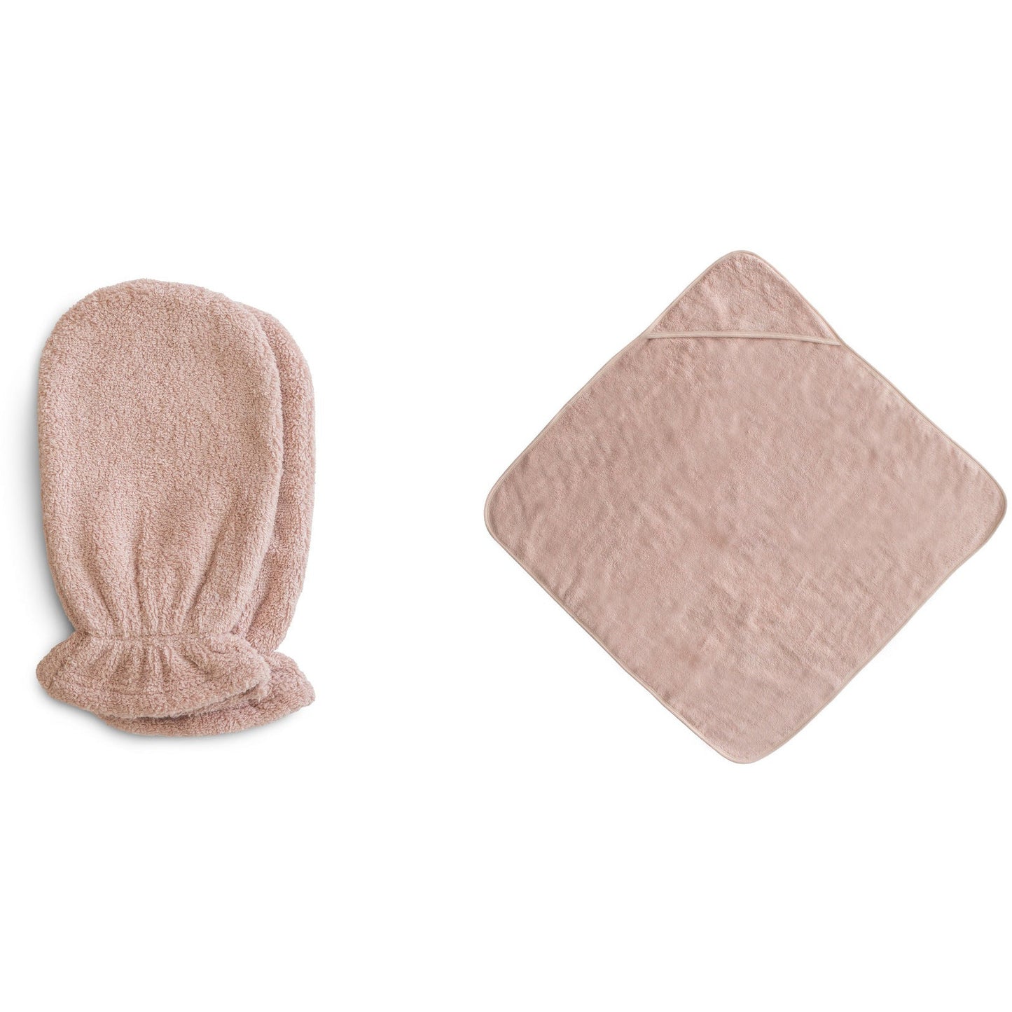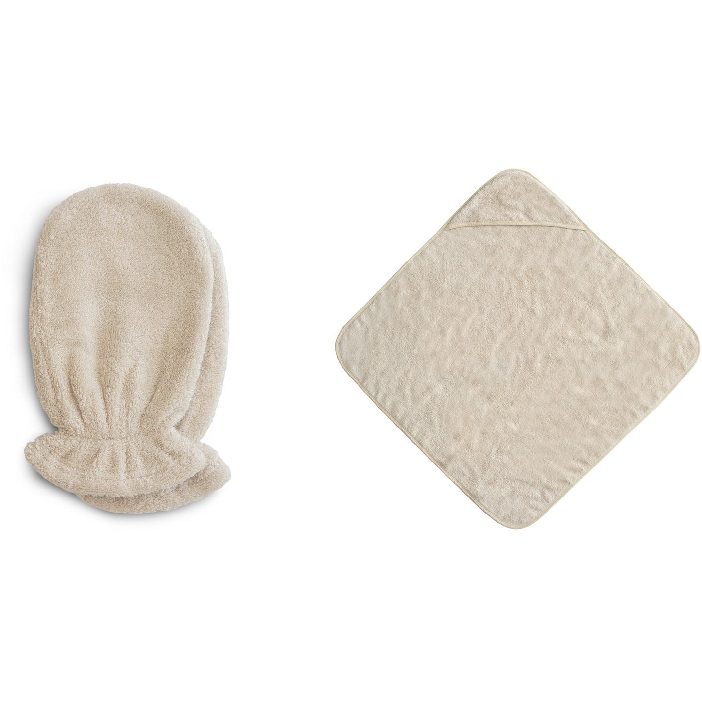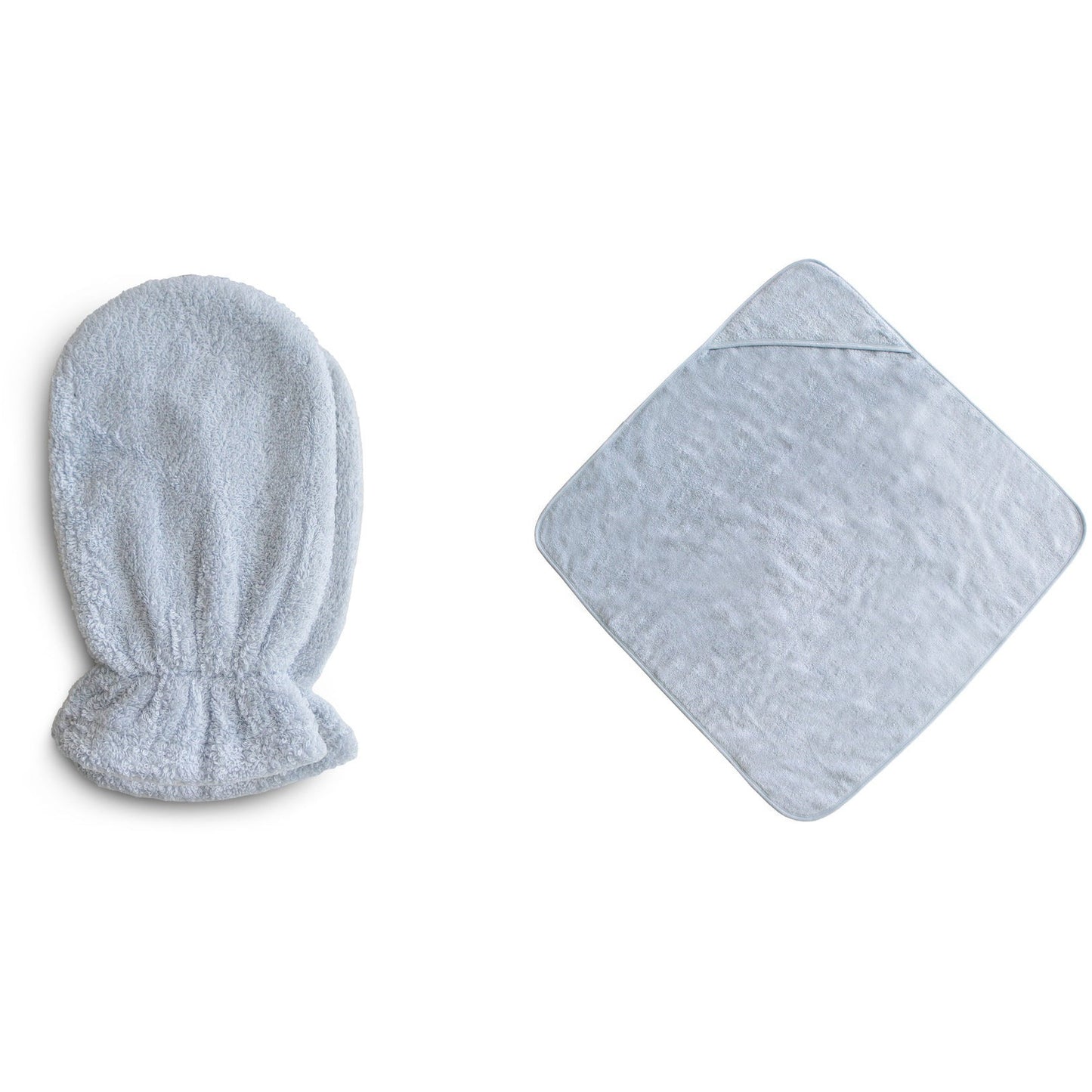 Organic Cotton Bath Mitt 2-Pack and Organic Cotton Baby Hooded Towel