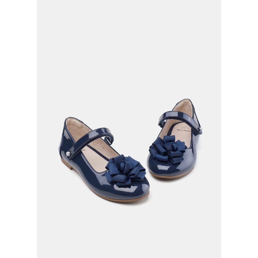 Patent leather flower mary jane shoes for girls