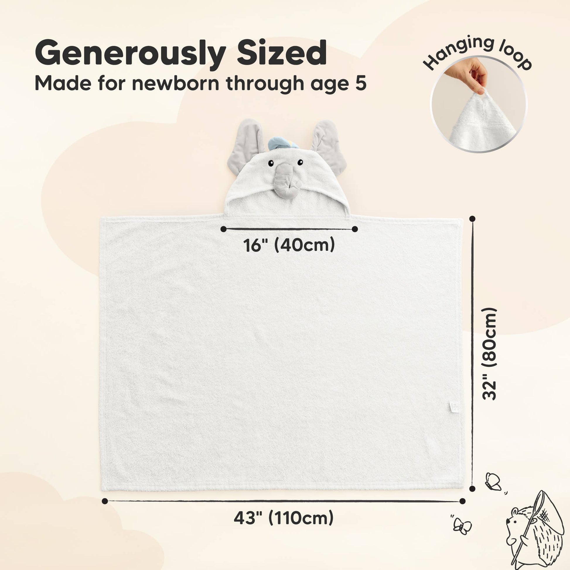 - Sized 43" x 40", perfect baby bath towels with hood for newborns up to age 5