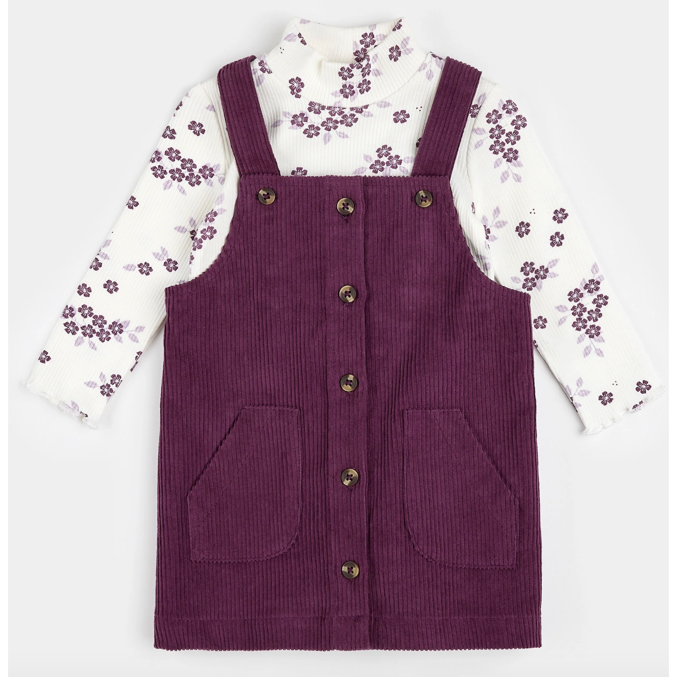 Dress your little girl in this adorable plum corduroy overall dress set! Made for infants, this set is the perfect combination of comfort and style. Let her explore and play while looking cute and fashionable. Get yours today and watch her shine!