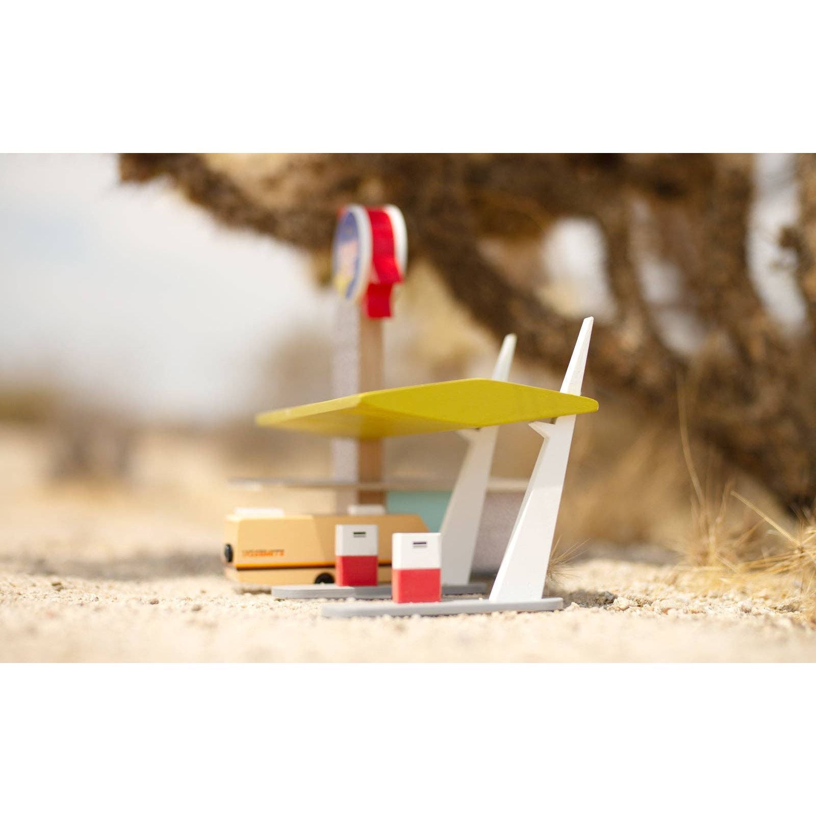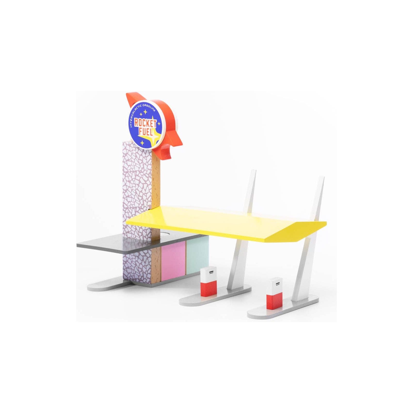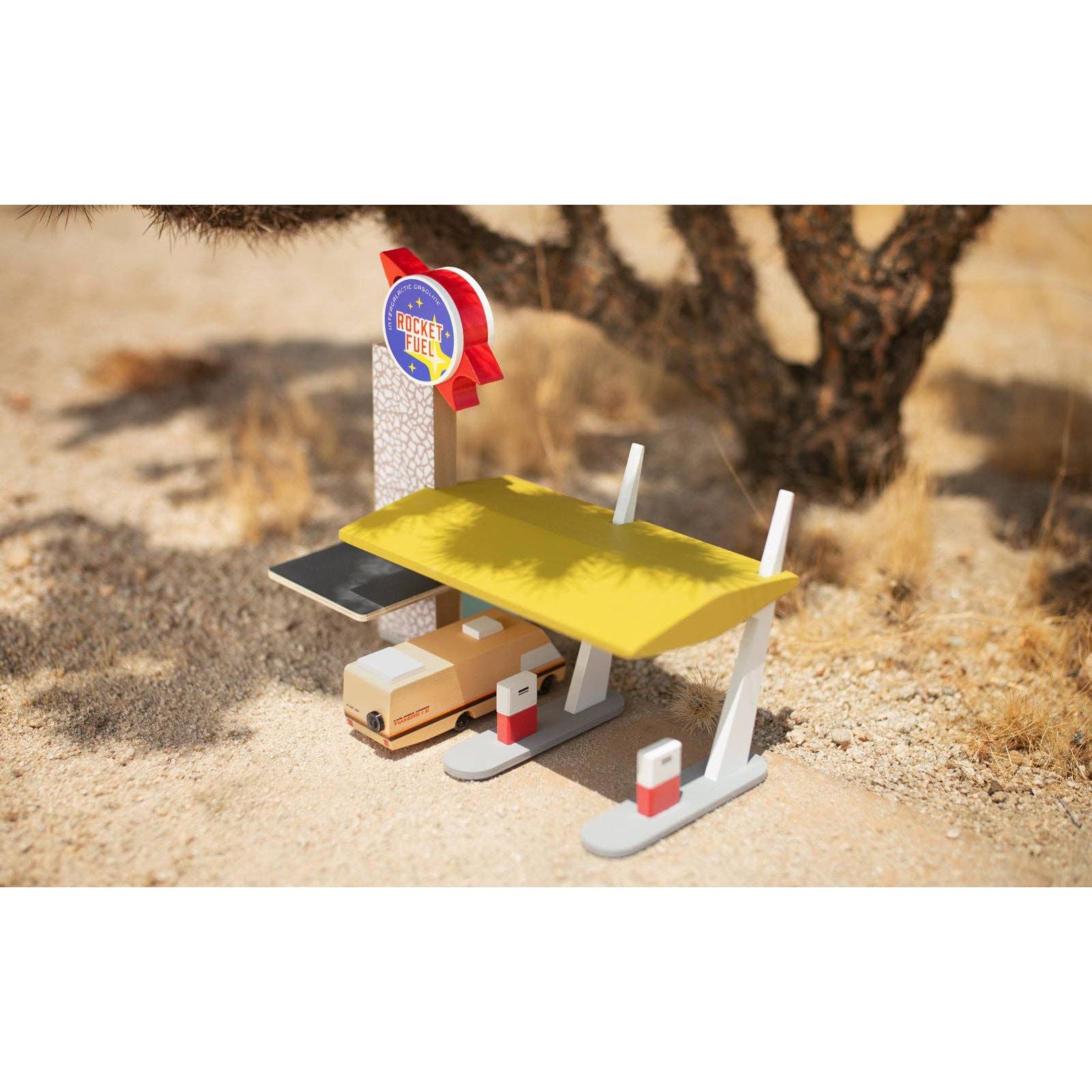 We understand the urge to hit the dusty trail and find adventure. But eventually, you gotta take a break and refuel. Travelers from around the world (and out of this world) are welcome to recharge, buy a snack, and top off there jerry cans at ROCKET FUEL - Intergalactic Gasoline! No glue or tools are required. Assembly time is measured in seconds.