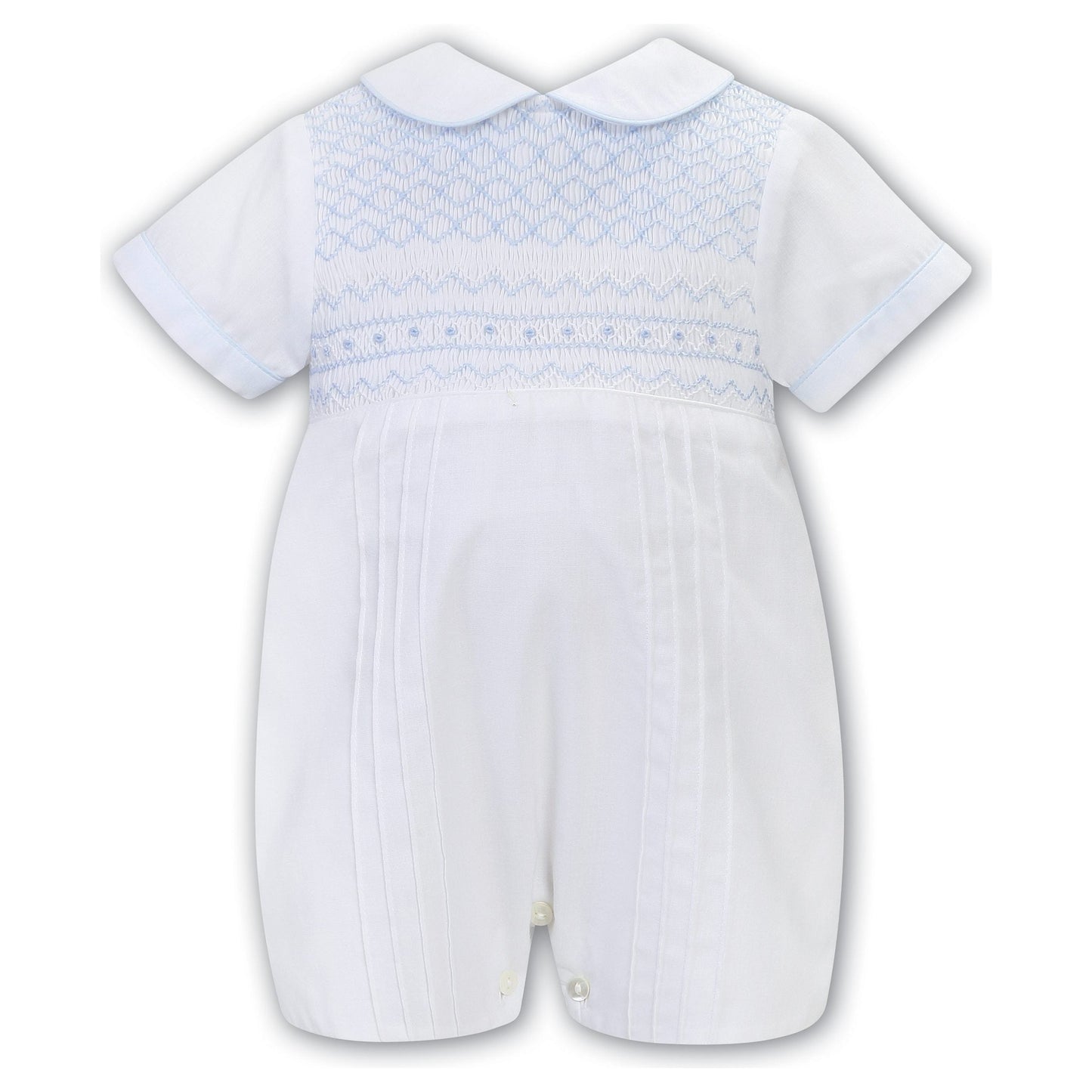 Our charming boys romper, designed with intricate hand smocking and a classic peter pan collar. The romper fastens at the back with mother of pearl buttons. A traditional wardrobe staple for the summer season, best dressed for any occasion.