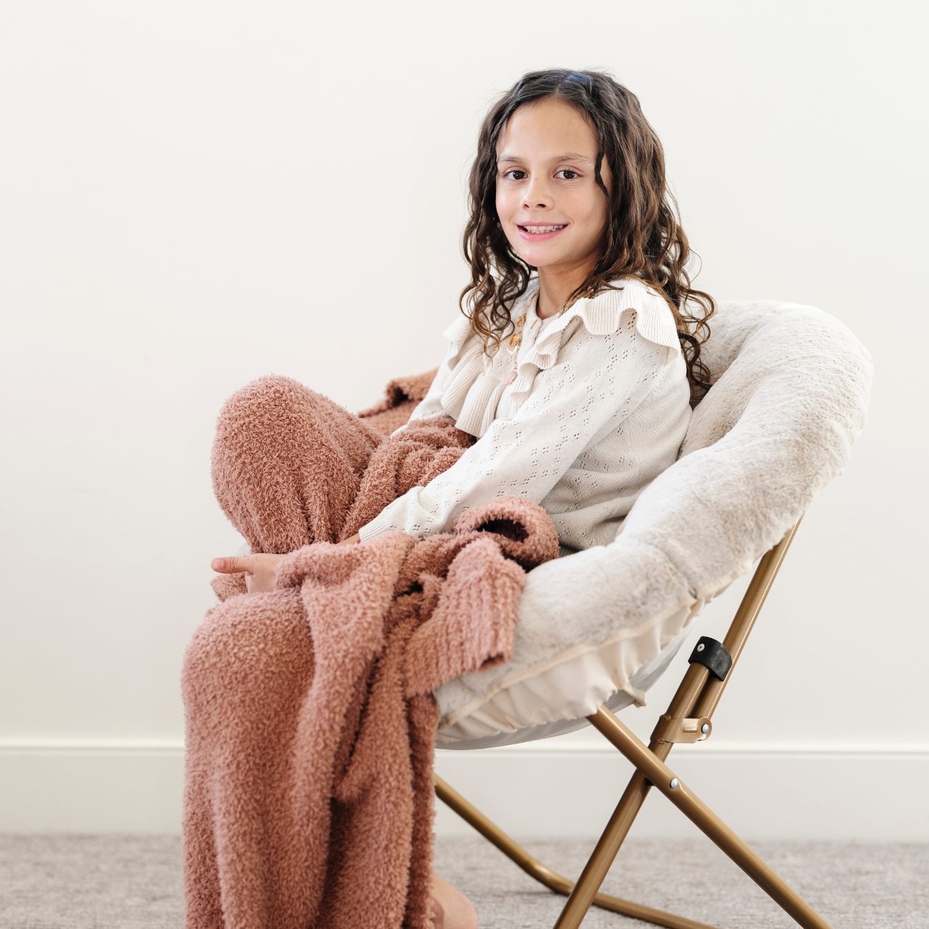 Their new safe space. Saranoni’s Faux Fur Saucer Chair is an lounge-worthy throwback with removable faux fur cover in the same blanket fabric you fell in love with! Designed to hold, fold up and join the party wherever they are! Wash cover on cold, no bleaches or softeners and lay flat to dry.
