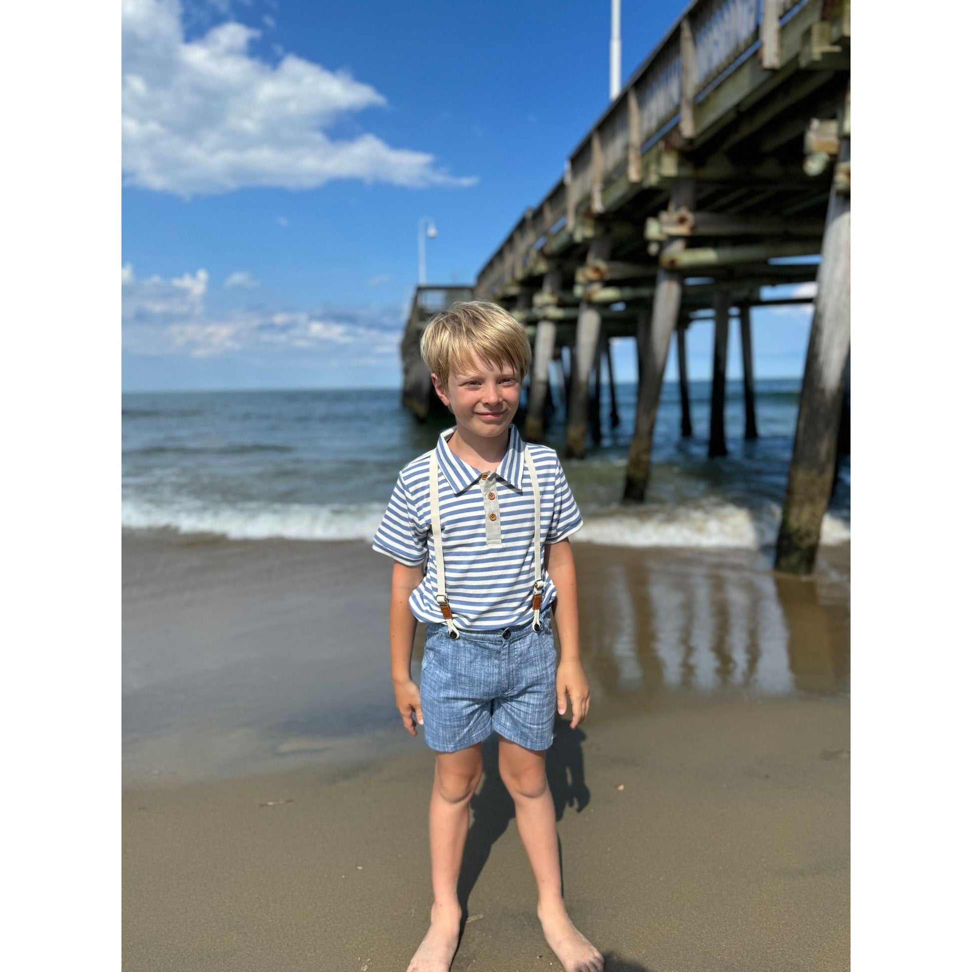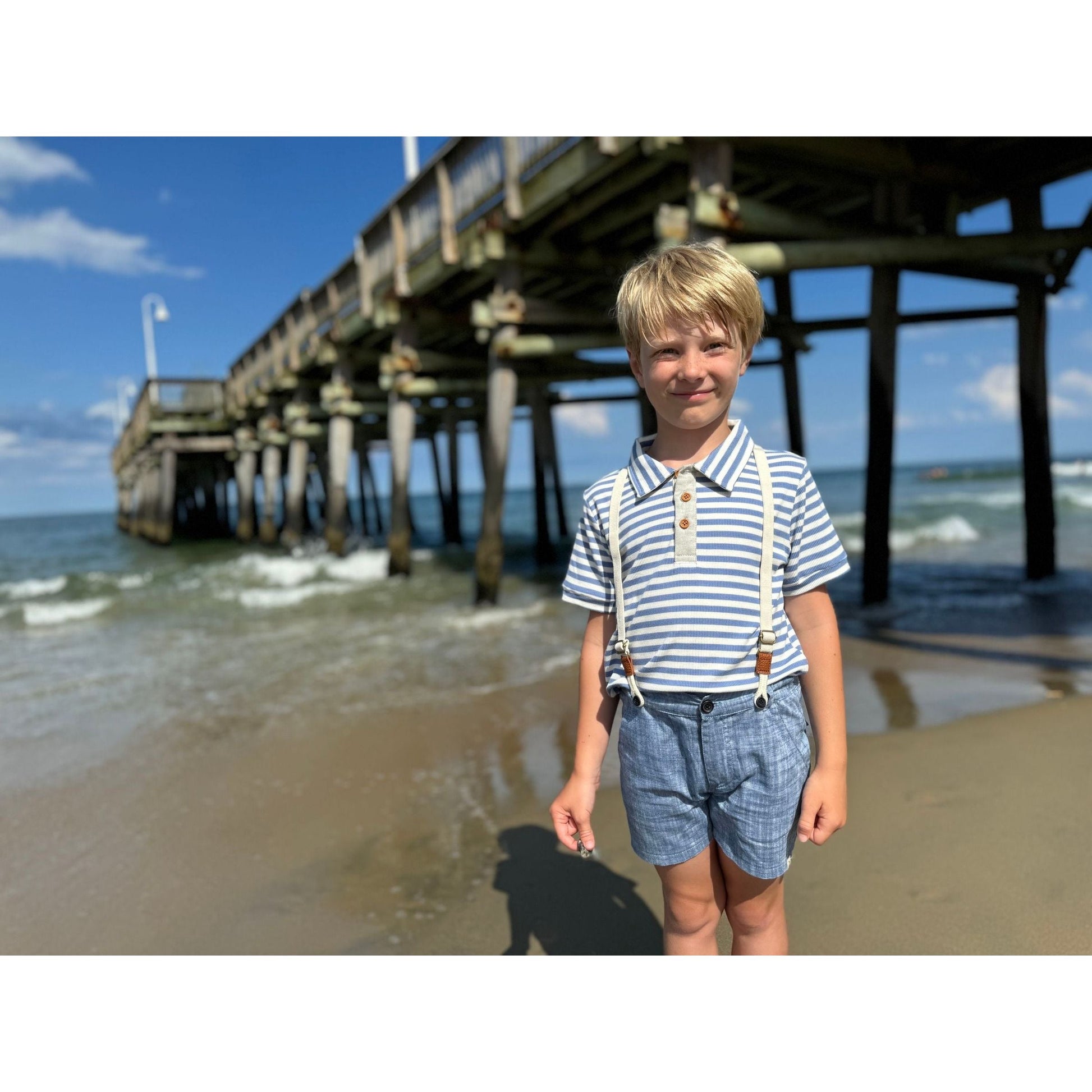 Get ready to ship out in style with our SHIPPING Polo! Made with 97% cotton and 3% spandex, this polo offers a perfect blend of comfort and flexibility. Designed with a playful blue and white striped rib, this shirt is perfect for boys who don't take themselves too seriously.