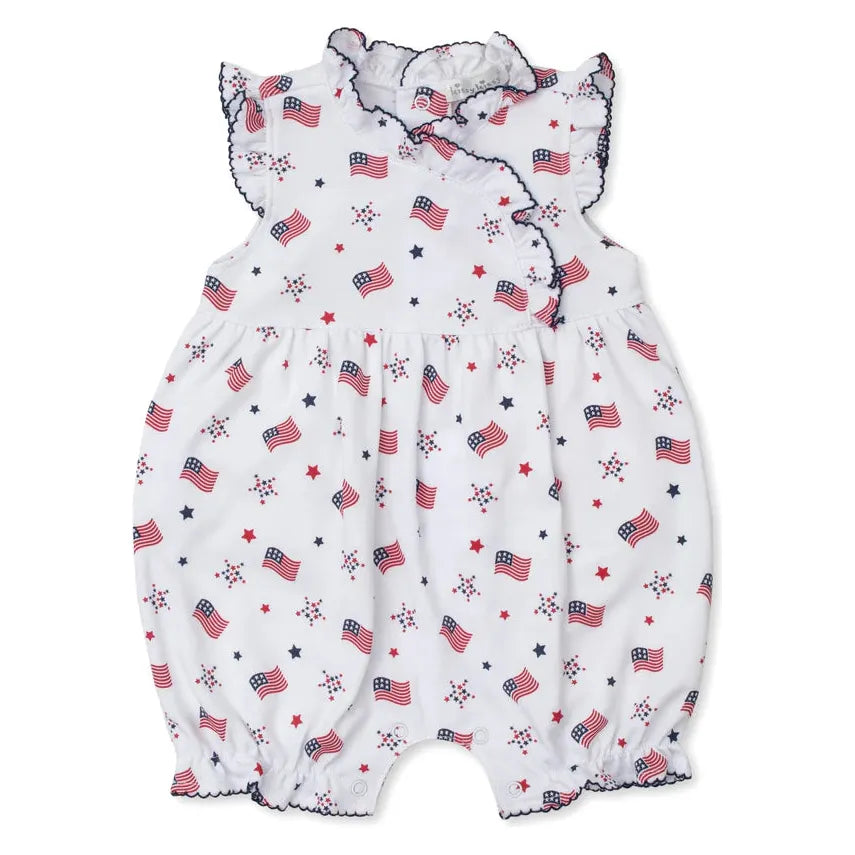 Fun ruffles and an allover star spangled spirit print covers this adorable playsuit that will keep baby cute, comfortable, and cozy. Made from the softest Pima cotton for ultimate comfort.