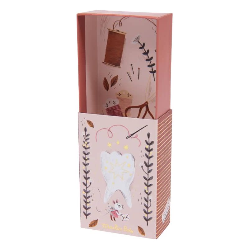 She holds an envelope with a floral design inside, perfect for keeping baby’s teeth!