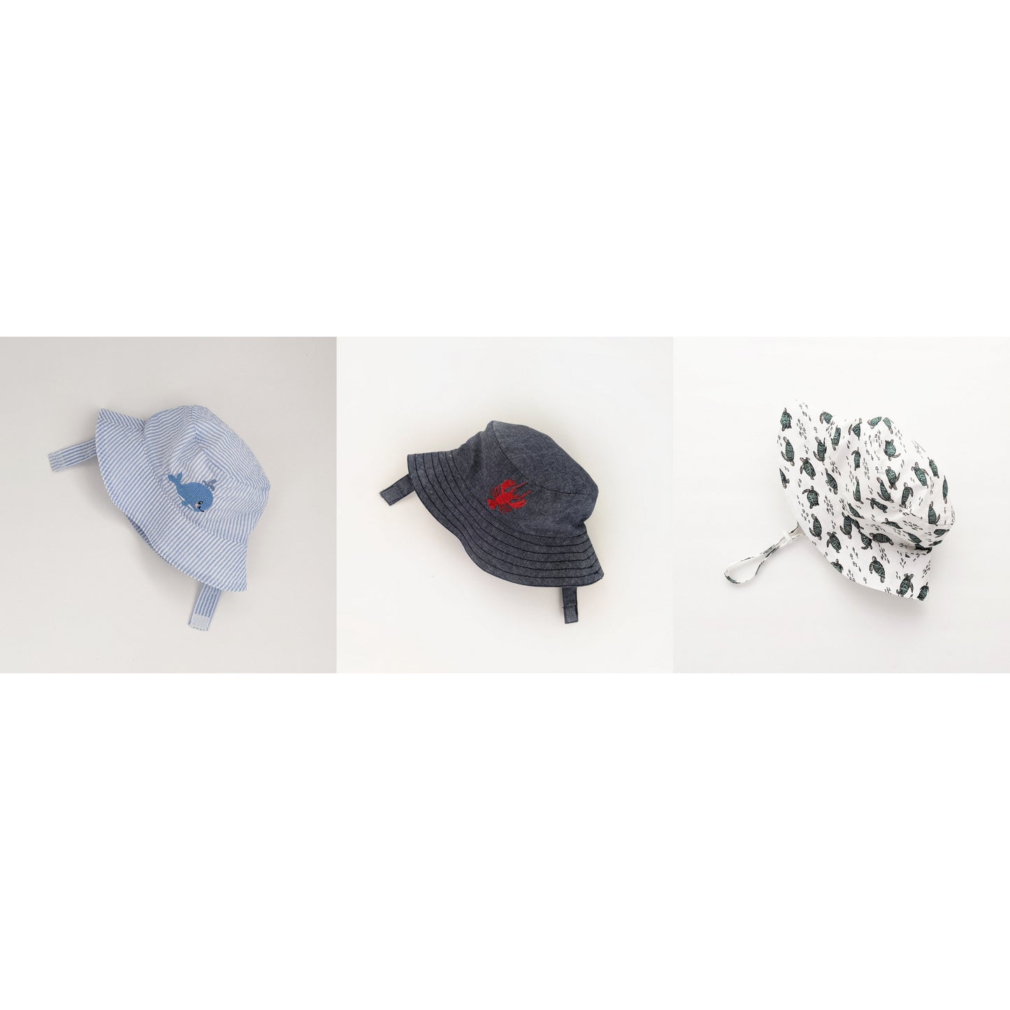 Perfect for the beach, and everyday wear, this chambray UPF 50+ bucket style sun hat is functional and cute. Made in deep blue fabric, it's embroidered with a red lobster. The chin strap Velcro's to keep the hat securely in place.