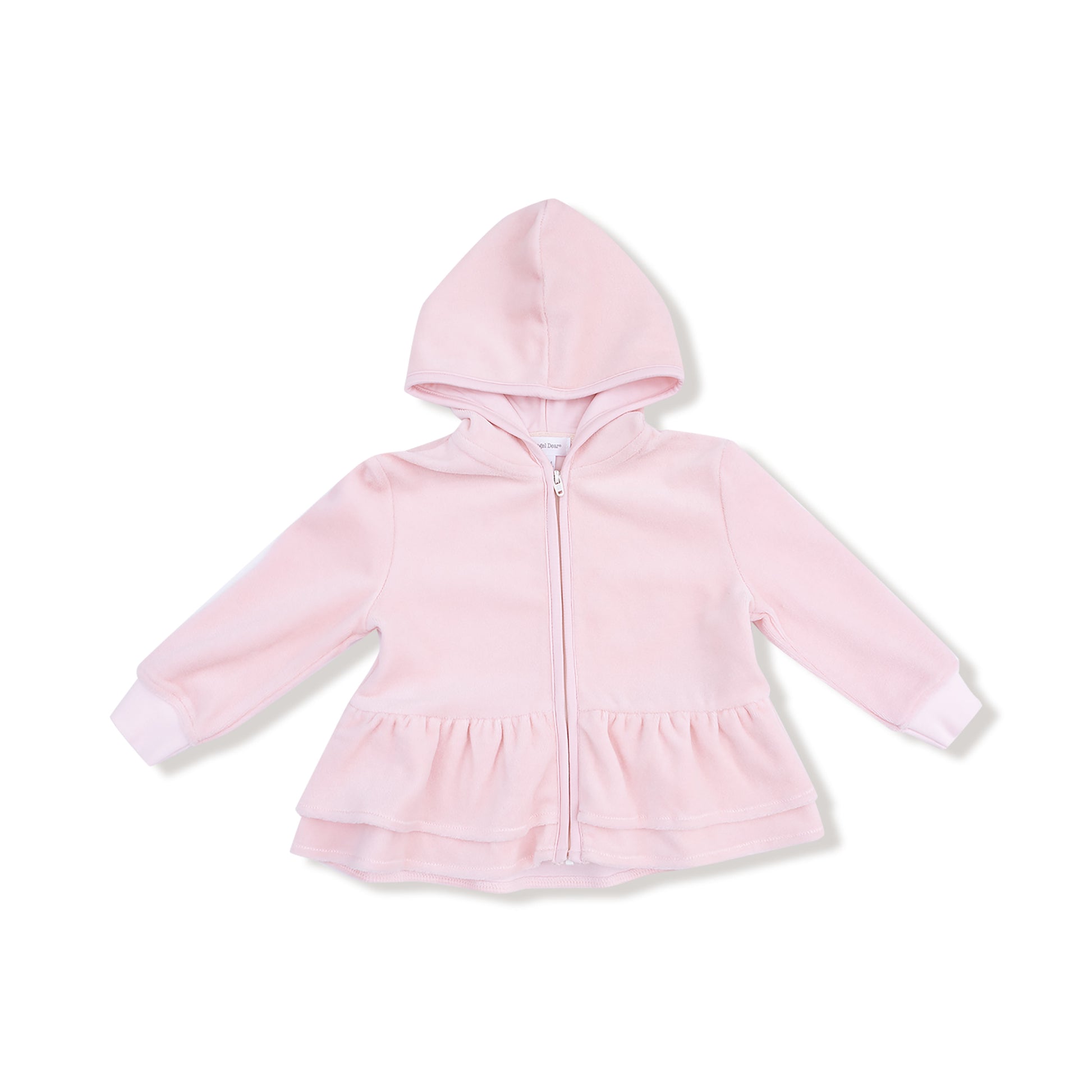 Snuggle up in this adorable velour teddy bear hoodie set! Featuring a cozy zip-up peplum hoodie paired with matching joggers, this two-piece outfit is perfect for playtime or lounging. The soft velour blend of 75% cotton and 25% polyester keeps little ones comfortable all day long. With its charming teddy bear design and playful silhouette, it's an instant favorite for any baby's wardrobe.