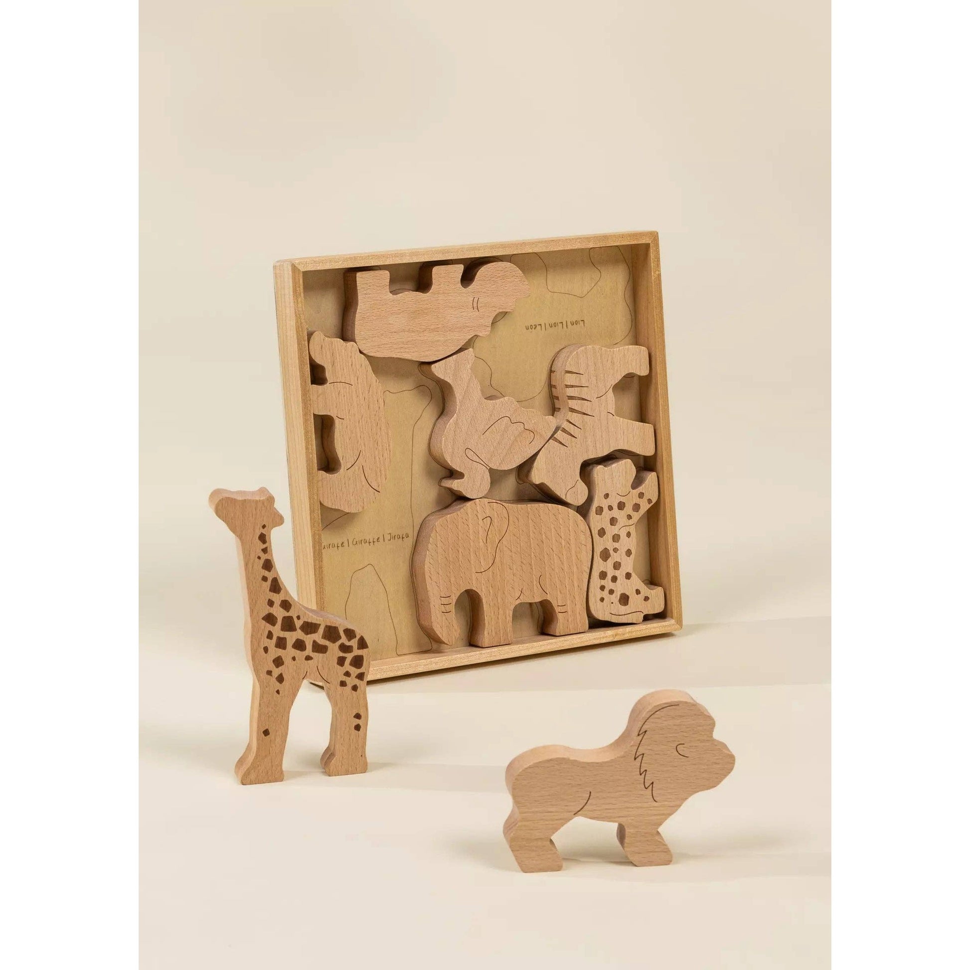 This delightful puzzle features a safari theme, with beautifully crafted wooden animal pieces, including lions, elephants, giraffes, and more. Each piece is designed to stack on top of one another, challenging your child to balance them all without toppling the tower. Perfect for developing fine motor skills.