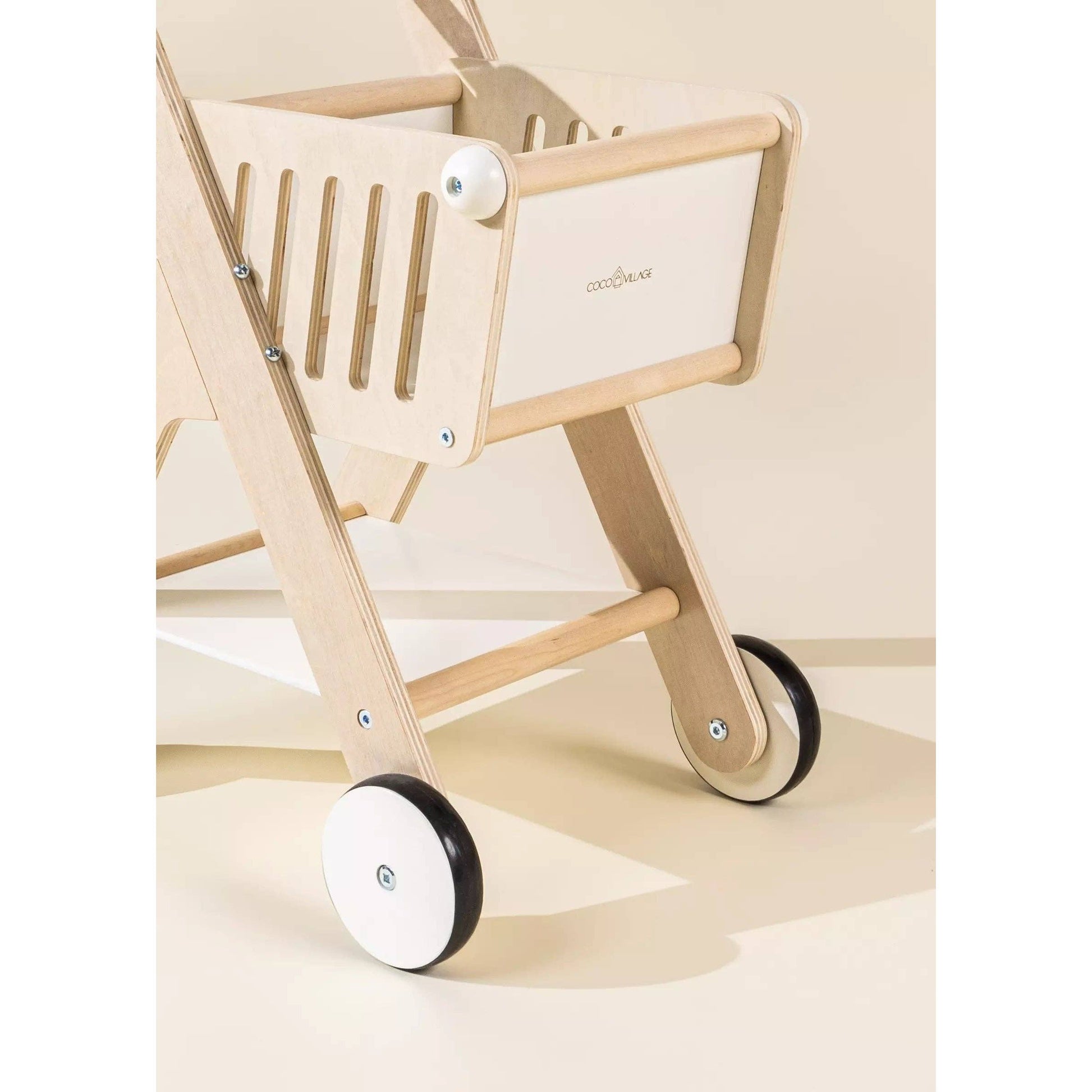 Children love to play pretend. The Wooden Shopping Cart is perfect on its own or combined with pretend play modules, such as the Mini Wooden Play Market Stand and the wooden playsets.