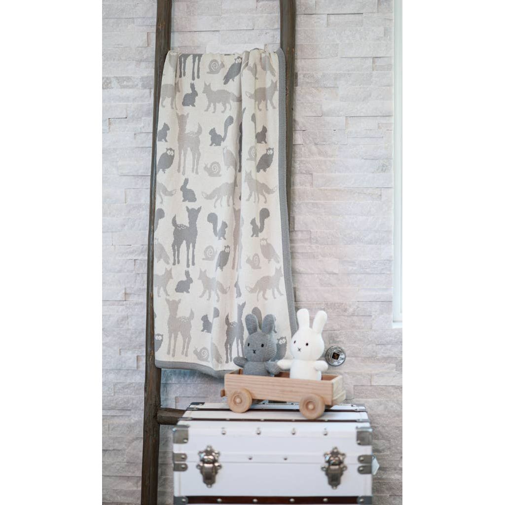 Woodland Animals Cotton Knit Baby Blanket