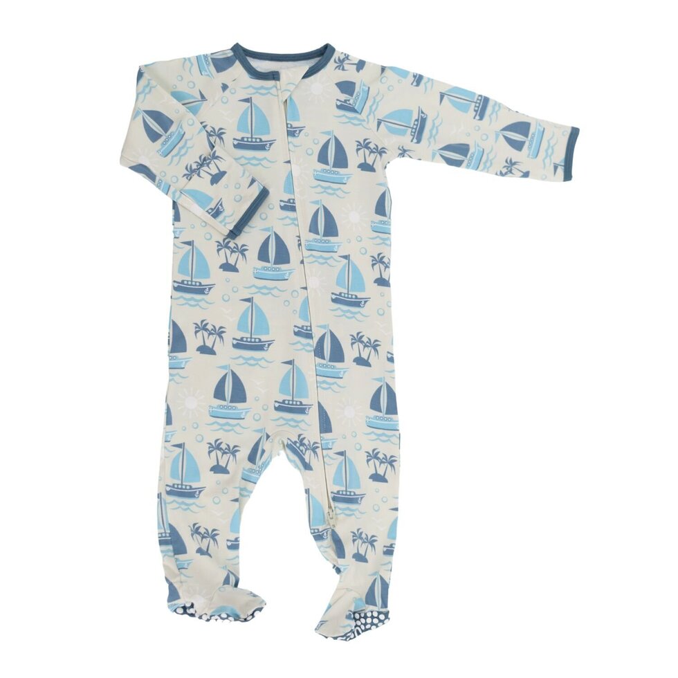 Ask and you shall receive. This yummy footie is equipped with a smooth 2-way zipper, silicone grips on the foot pads and fold-over handcuffs. Plus our beautiful bamboo fabric hugs in all the right places to show off those baby curves.